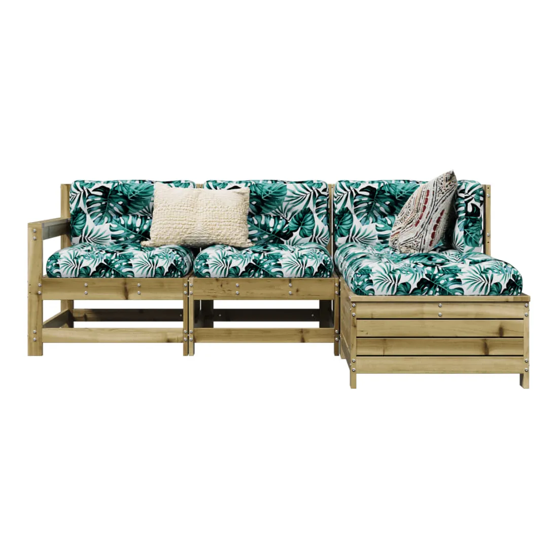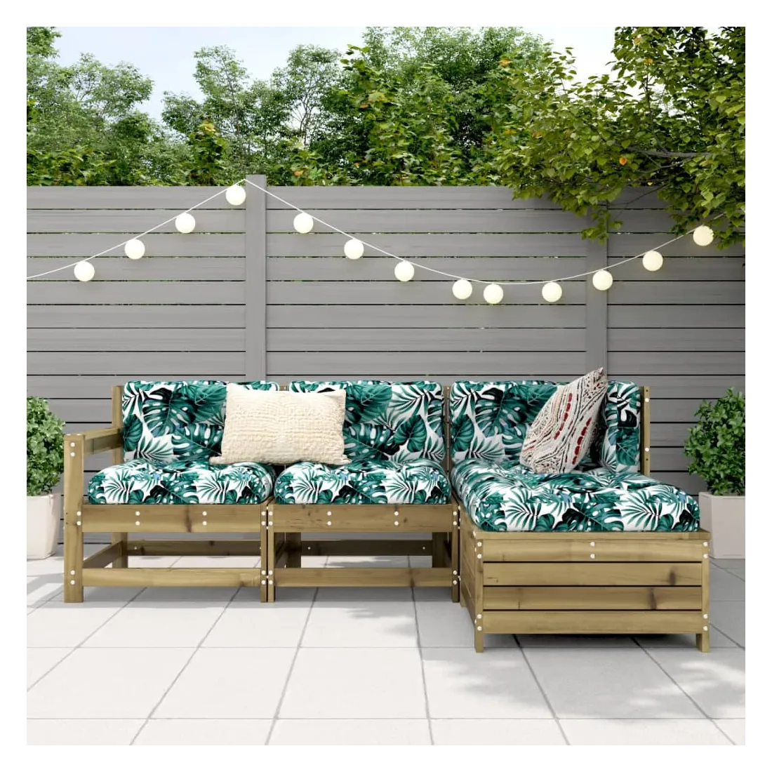 vidaXLCet ensemble de salon de jardin en bois avec un design à lattes sera un excellent complément à votre jardin, patio ou terrasse pour profiter d'un moment agréable avec votre famille ou vos amis. Matériau robuste et durable : le bois de pin massif est connu pour sa résistance et sa durabilité. Ses grains droits et ses nœuds distinctifs contribuent à son charme rustique. Il a été imprégné avec une solution de conservation et a subi un traitement en autoclave, ce qui renforce sa résistance à la pourriture et aux intempéries. Bien ventilé et prévention de l'accumulation d'eau : la conception à lattes favorise une circulation optimale de l'air et empêche efficacement l'accumulation d'eau, assurant ainsi une assise sèche et confortable. Utilisation polyvalente : le repose-pied de jardin peut non seulement être utilisé pour s'asseoir ou se détendre, mais il peut également être utilisé comme table basse pour contenir vos boissons, votre nourriture et d'autres décorations. Conception modulaire : cet ensemble de meubles d'extérieur a une conception modulaire, ce qui le rend complètement flexible et facile à déplacer, afin que vous puissiez créer un agencement de meubles d'extérieur personnalisé. Bon à savoir :Pour que vos meubles d'extérieur restent beaux, nous vous recommandons de les protéger avec une housse imperméable.