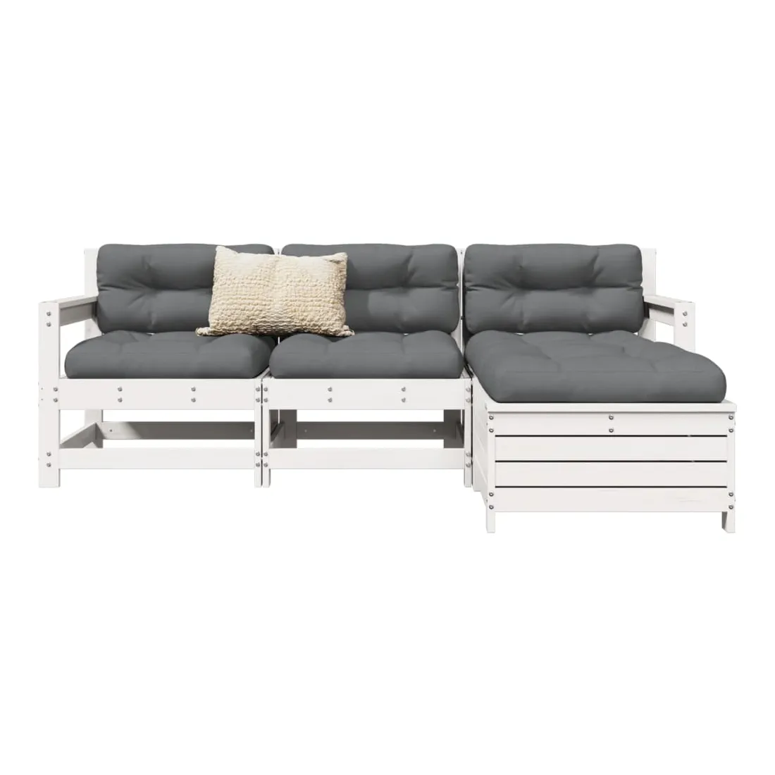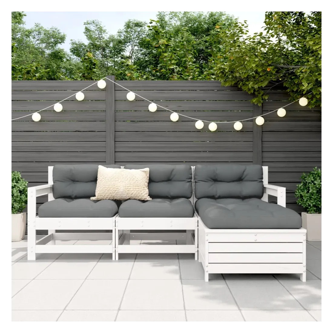 Cet ensemble de salon de jardin en bois avec un design à lattes sera un excellent complément à votre jardin, patio ou terrasse pour profiter d'un moment agréable avec votre famille ou vos amis. Matériau robuste et durable : le bois de pin massif est connu pour sa résistance et sa durabilité. Ses grains droits et ses nœuds distinctifs contribuent à son charme rustique. Bien ventilé et prévention de l'accumulation d'eau : la conception à lattes favorise une circulation optimale de l'air et empêche efficacement l'accumulation d'eau, assurant ainsi une assise sèche et confortable. Utilisation polyvalente : le repose-pied de jardin peut non seulement être utilisé pour s'asseoir ou se détendre, mais il peut également être utilisé comme table basse pour contenir vos boissons, votre nourriture et d'autres décorations. Conception modulaire : cet ensemble de meubles d'extérieur a une conception modulaire, ce qui le rend complètement flexible et facile à déplacer, afin que vous puissiez créer un agencement de meubles d'extérieur personnalisé. Bon à savoir :Pour que vos meubles d'extérieur restent beaux, nous vous recommandons de les protéger avec une housse imperméable.