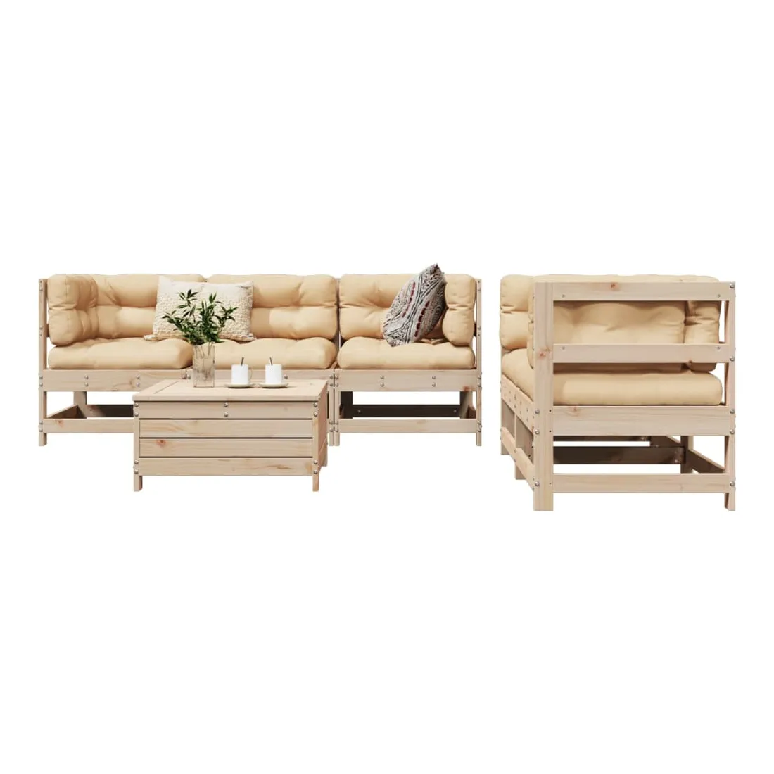 Cet ensemble de salon de jardin en bois avec un design à lattes sera un excellent complément à votre jardin, patio ou terrasse pour profiter d'un moment agréable avec votre famille ou vos amis. Matériau robuste et durable : le bois de pin massif est connu pour sa résistance et sa durabilité. Ses grains droits et ses nœuds distinctifs contribuent à son charme rustique. Bien ventilé et prévention de l'accumulation d'eau : la conception à lattes favorise une circulation optimale de l'air et empêche efficacement l'accumulation d'eau, assurant ainsi une assise sèche et confortable. Utilisation polyvalente : le repose-pied de jardin peut non seulement être utilisé pour s'asseoir ou se détendre, mais il peut également être utilisé comme table basse pour contenir vos boissons, votre nourriture et d'autres décorations. Conception modulaire : cet ensemble de meubles d'extérieur a une conception modulaire, ce qui le rend complètement flexible et facile à déplacer, afin que vous puissiez créer un agencement de meubles d'extérieur personnalisé. Bon à savoir :Pour que vos meubles d'extérieur restent beaux, nous vous recommandons de les protéger avec une housse imperméable.