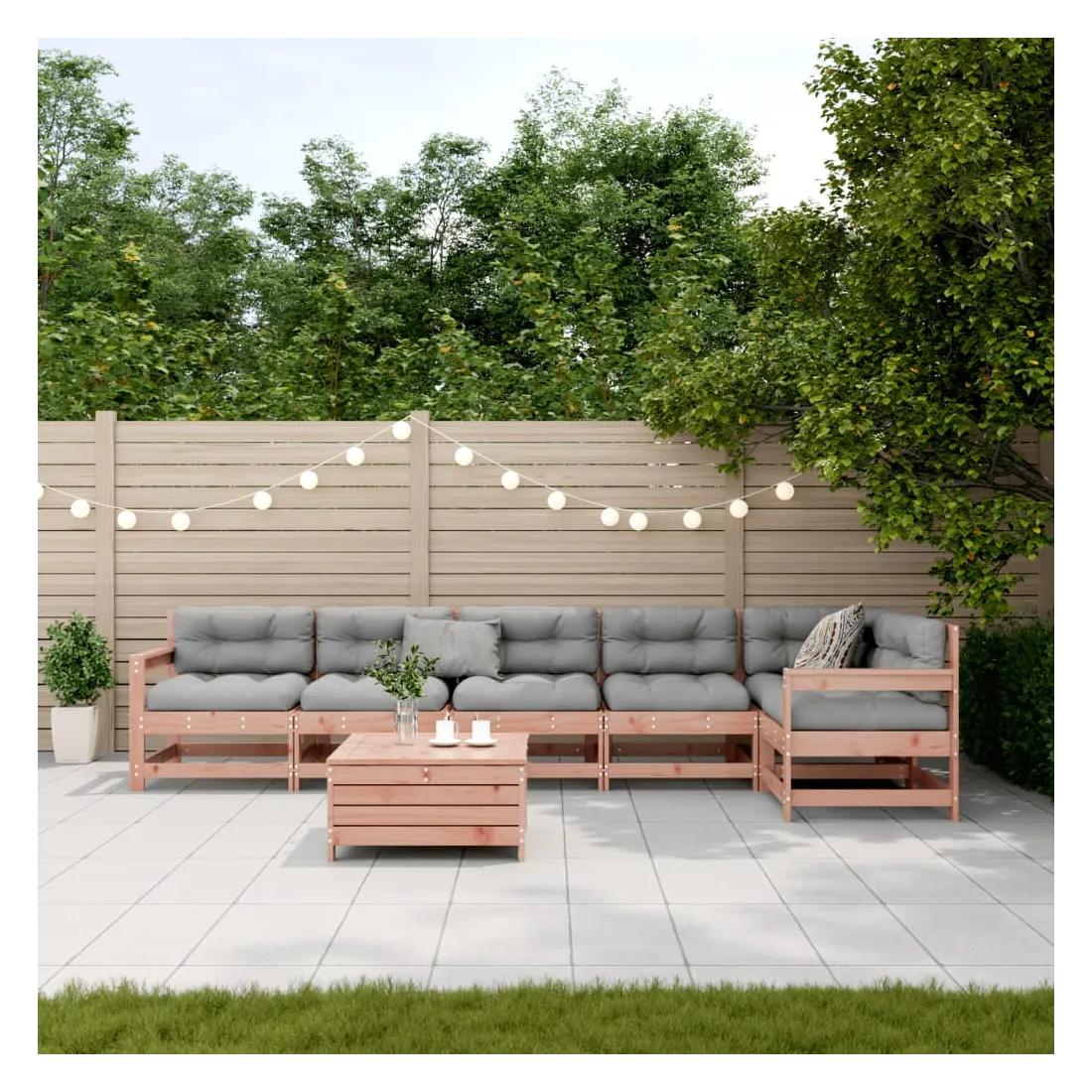 Salon de jardin 7 pcs avec coussins bois massif douglas