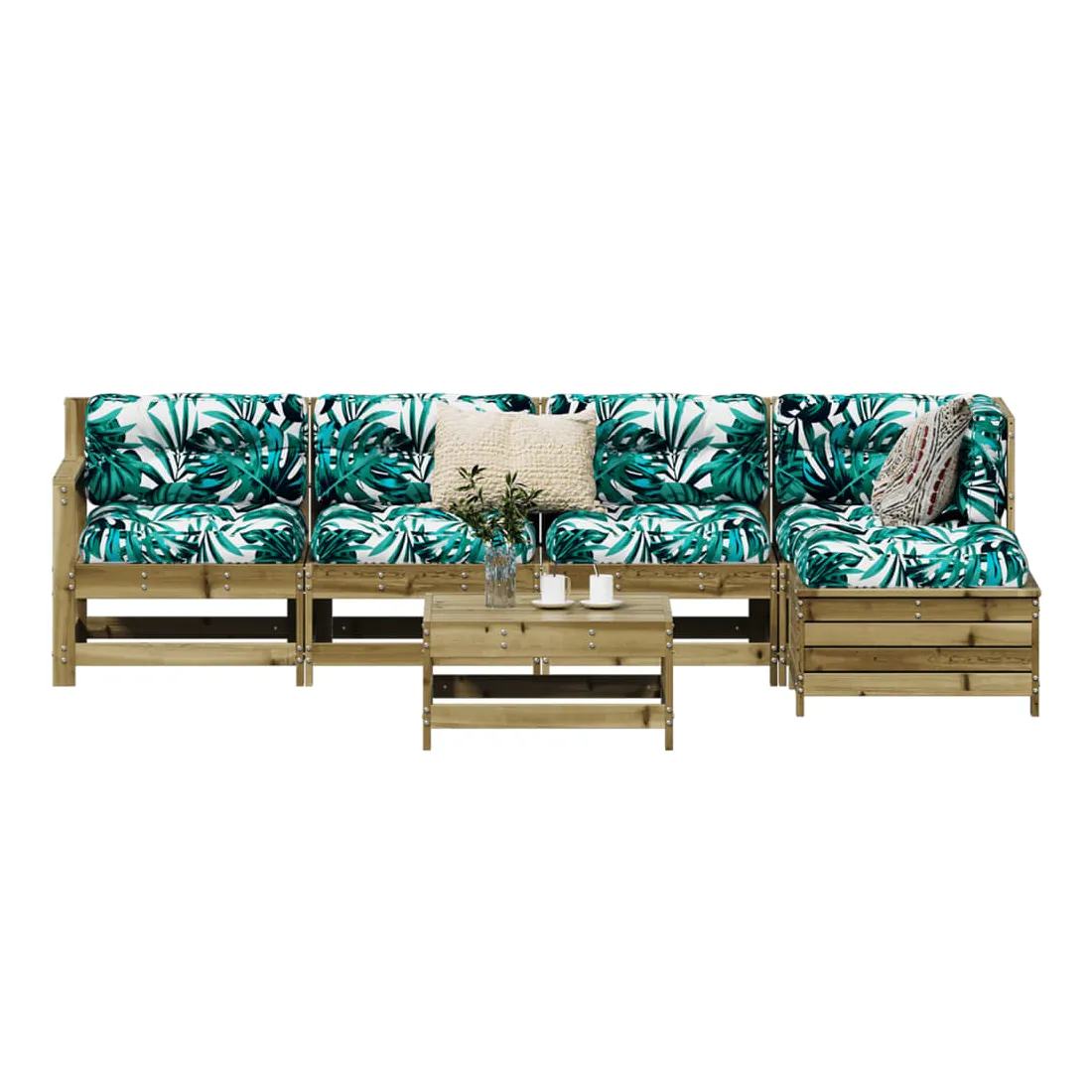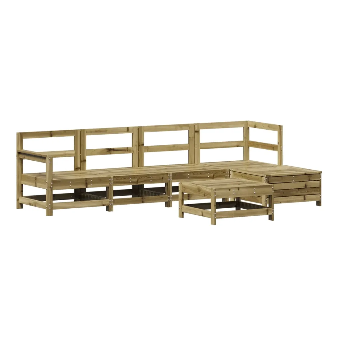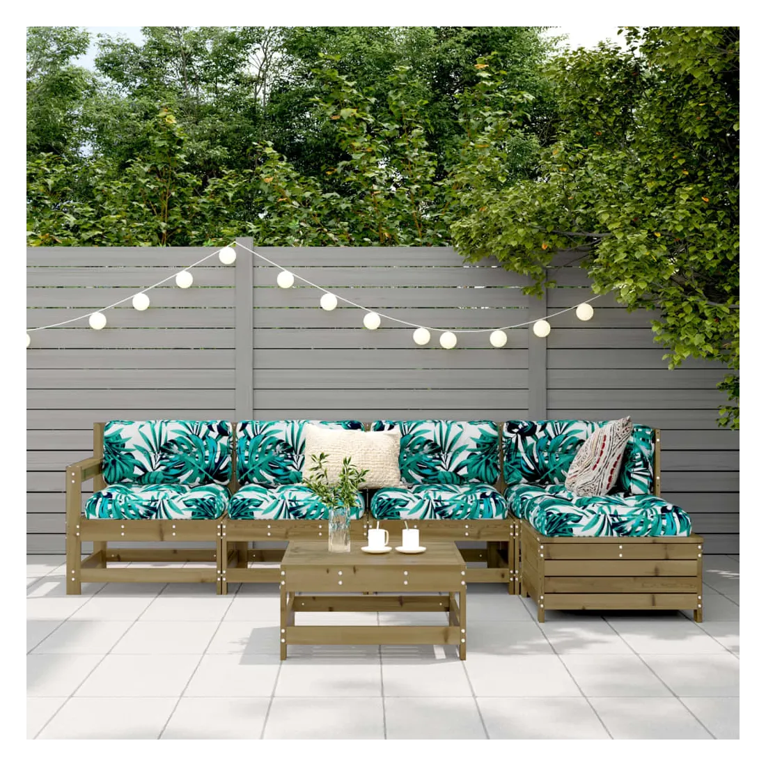 Cet ensemble de salon de jardin en bois avec un design à lattes sera un excellent complément à votre jardin, patio ou terrasse pour profiter d'un moment agréable avec votre famille ou vos amis. Matériau robuste et durable : le bois de pin massif est connu pour sa résistance et sa durabilité. Ses grains droits et ses nœuds distinctifs contribuent à son charme rustique. Il a été imprégné avec une solution de conservation et a subi un traitement en autoclave, ce qui renforce sa résistance à la pourriture et aux intempéries. Bien ventilé et prévention de l'accumulation d'eau : la conception à lattes favorise une circulation optimale de l'air et empêche efficacement l'accumulation d'eau, assurant ainsi une assise sèche et confortable. Utilisation polyvalente : le repose-pied de jardin peut non seulement être utilisé pour s'asseoir ou se détendre, mais il peut également être utilisé comme table basse pour contenir vos boissons, votre nourriture et d'autres décorations. Conception modulaire : cet ensemble de meubles d'extérieur a une conception modulaire, ce qui le rend complètement flexible et facile à déplacer, afin que vous puissiez créer un agencement de meubles d'extérieur personnalisé. Bon à savoir :Pour que vos meubles d'extérieur restent beaux, nous vous recommandons de les protéger avec une housse imperméable.
