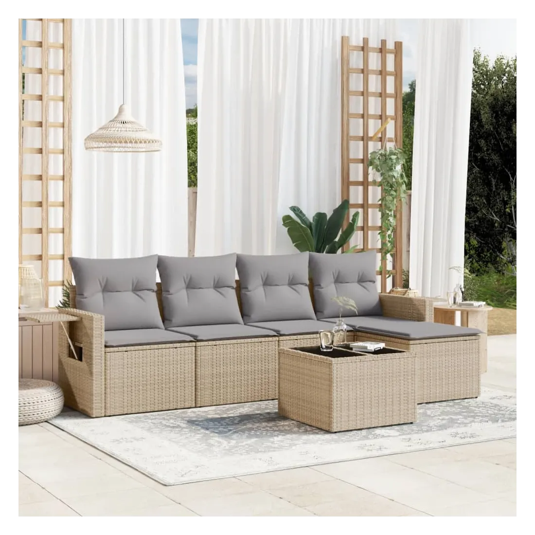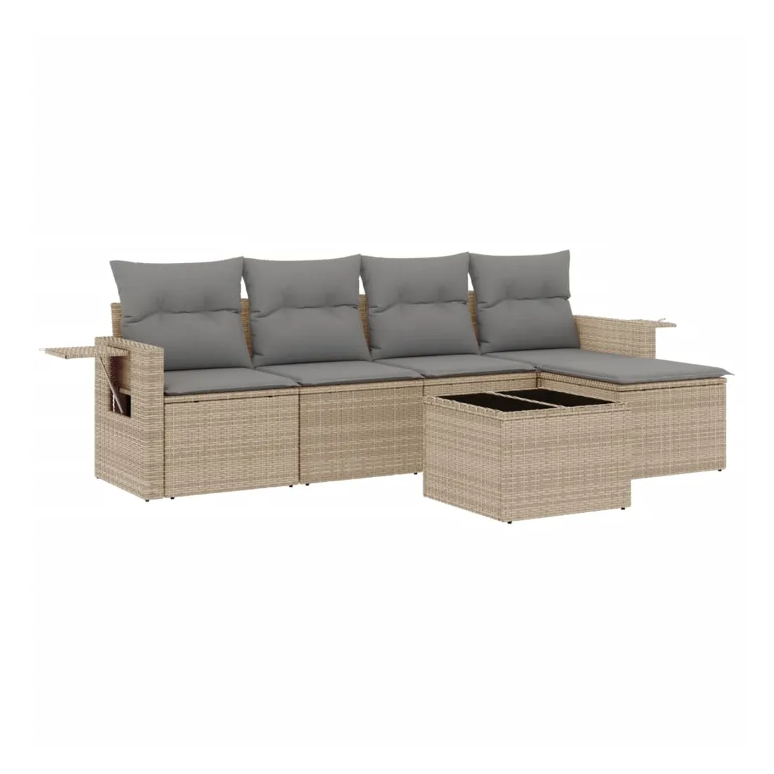 Cet ensemble de canapés de jardin est le complément parfait de votre arrière-cour, terrasse ou patio, offrant un espace confortable et accueillant pour discuter avec la famille et les amis ou simplement se détendre et profiter de l'extérieur. Matériau durable : la résine tressée, également connue sous le nom de poly rotin, est un matériau synthétique solide et nécessitant peu d'entretien qui ressemble au rotin naturel. Il est léger, facile à nettoyer et couramment utilisé pour les meubles d'extérieur en raison de sa durabilité et de ses propriétés de résistance aux intempéries.Fonction de rangement avec sac résistant à l'eau : le mobilier de jardin dispose d'un espace de rangement sous l'assise, complété par un sac résistant à l'eau pour ranger coussins, jouets et autres objets. Le sac intérieur peut être solidement fixé au mobilier d'extérieur grâce à des attaches auto-agrippantes pour plus de stabilité.Table d'appoint pratique : ce mobilier d'extérieur comprend une table d'appoint pliable avec un ressort à gaz sur les accoudoirs, offrant un endroit pratique pour garder vos essentiels à portée de main.Housse amovible et lavable : ces coussins de siège sont dotés de housses amovibles pour un lavage et un entretien faciles.Conception modulaire : cet ensemble de meubles d'extérieur a une conception modulaire, ce qui le rend complètement flexible et facile à déplacer, afin que vous puissiez créer un agencement de meubles d'extérieur personnalisé. Bon à savoir :Pour que vos meubles d'extérieur restent beaux, nous vous recommandons de les protéger avec une housse imperméable.