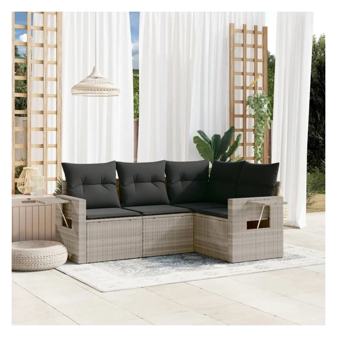 Cet ensemble de canapés de jardin est le complément parfait de votre arrière-cour, terrasse ou patio, offrant un espace confortable et accueillant pour discuter avec la famille et les amis ou simplement se détendre et profiter de l'extérieur. Matériau durable : la résine tressée, également connue sous le nom de poly rotin, est un matériau synthétique solide et nécessitant peu d'entretien qui ressemble au rotin naturel. Il est léger, facile à nettoyer et couramment utilisé pour les meubles d'extérieur en raison de sa durabilité et de ses propriétés de résistance aux intempéries.Fonction de rangement avec sac résistant à l'eau : le mobilier de jardin dispose d'un espace de rangement sous l'assise, complété par un sac résistant à l'eau pour ranger coussins, jouets et autres objets. Le sac intérieur peut être solidement fixé au mobilier d'extérieur grâce à des attaches auto-agrippantes pour plus de stabilité.Table d'appoint pratique : ce mobilier d'extérieur comprend une table d'appoint pliable avec un ressort à gaz sur les accoudoirs, offrant un endroit pratique pour garder vos essentiels à portée de main.Housse amovible et lavable : ces coussins de siège sont dotés de housses amovibles pour un lavage et un entretien faciles.Conception modulaire : cet ensemble de meubles d'extérieur a une conception modulaire, ce qui le rend complètement flexible et facile à déplacer, afin que vous puissiez créer un agencement de meubles d'extérieur personnalisé. Bon à savoir :Pour que vos meubles d'extérieur restent beaux, nous vous recommandons de les protéger avec une housse imperméable.