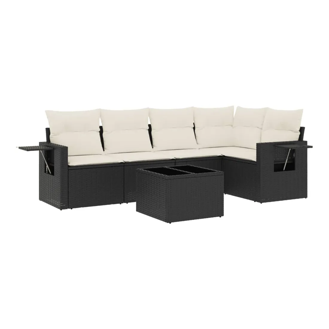 Salon de jardin 6 pcs avec coussins noir résine tressée