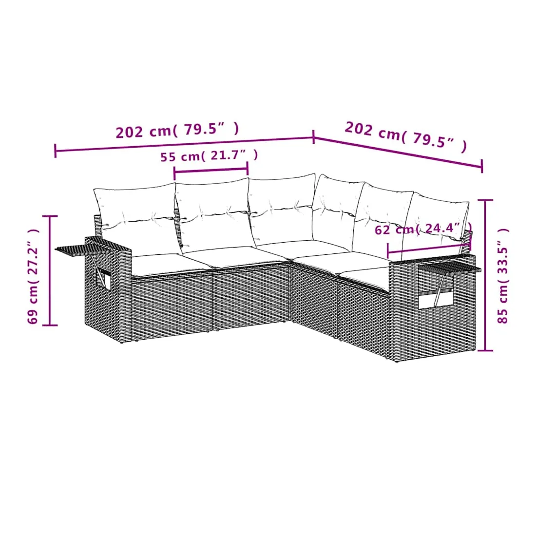 Salon de jardin 5 pcs avec coussins gris clair résine tressée