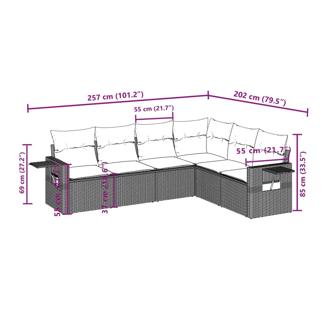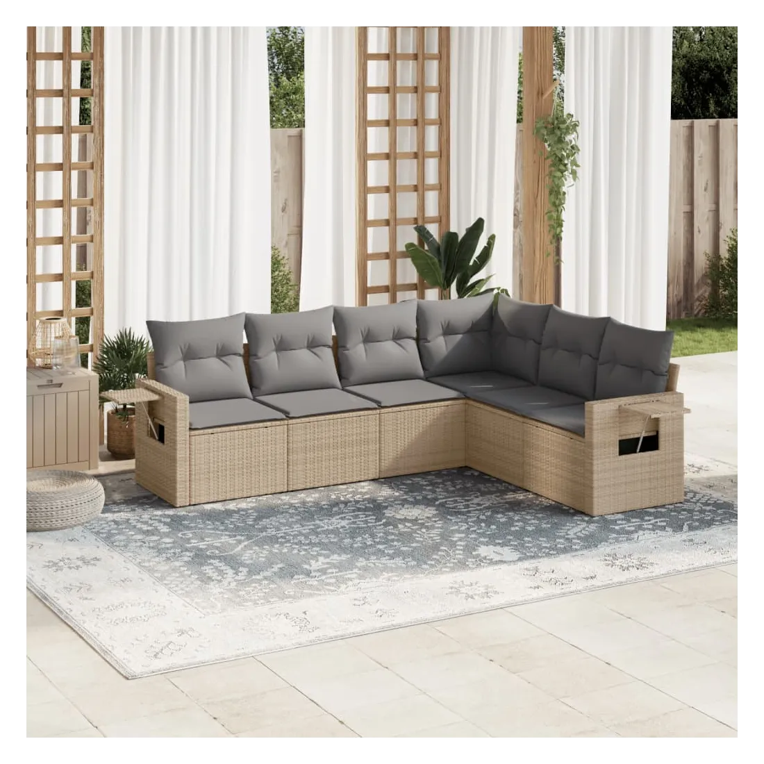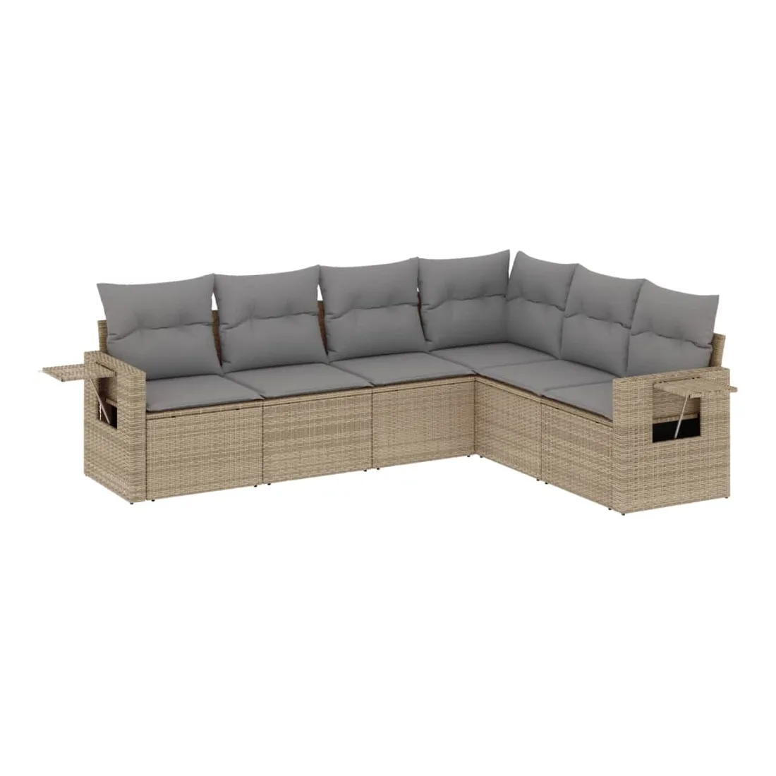 Salon de jardin avec coussins 6 pcs beige résine tressée