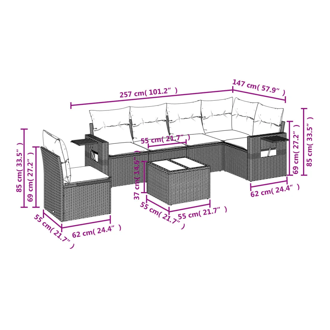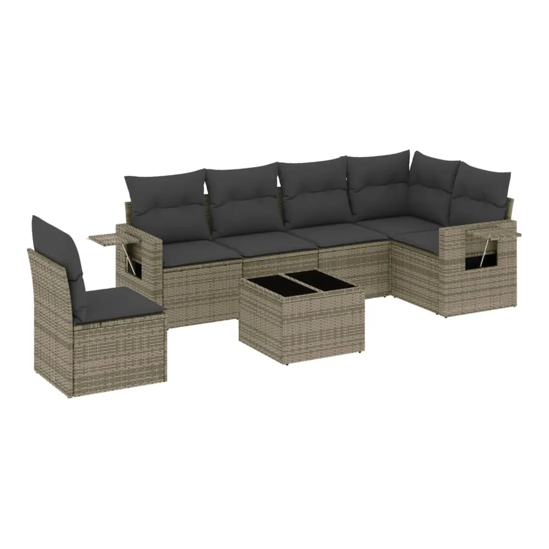 Cet ensemble de canapés de jardin est le complément parfait de votre arrière-cour, terrasse ou patio, offrant un espace confortable et accueillant pour discuter avec la famille et les amis ou simplement se détendre et profiter de l'extérieur. Matériau durable : la résine tressée, également connue sous le nom de poly rotin, est un matériau synthétique solide et nécessitant peu d'entretien qui ressemble au rotin naturel. Il est léger, facile à nettoyer et couramment utilisé pour les meubles d'extérieur en raison de sa durabilité et de ses propriétés de résistance aux intempéries.Fonction de rangement avec sac résistant à l'eau : le mobilier de jardin dispose d'un espace de rangement sous l'assise, complété par un sac résistant à l'eau pour ranger coussins, jouets et autres objets. Le sac intérieur peut être solidement fixé au mobilier d'extérieur grâce à des attaches auto-agrippantes pour plus de stabilité.Table d'appoint pratique : ce mobilier d'extérieur comprend une table d'appoint pliable avec un ressort à gaz sur les accoudoirs, offrant un endroit pratique pour garder vos essentiels à portée de main.Housse amovible et lavable : ces coussins de siège sont dotés de housses amovibles pour un lavage et un entretien faciles.Conception modulaire : cet ensemble de meubles d'extérieur a une conception modulaire, ce qui le rend complètement flexible et facile à déplacer, afin que vous puissiez créer un agencement de meubles d'extérieur personnalisé. Bon à savoir :Pour que vos meubles d'extérieur restent beaux, nous vous recommandons de les protéger avec une housse imperméable.