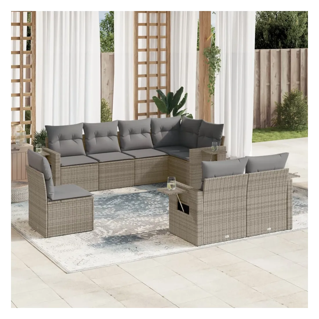 Salon de jardin 8 pcs avec coussins gris résine tressée