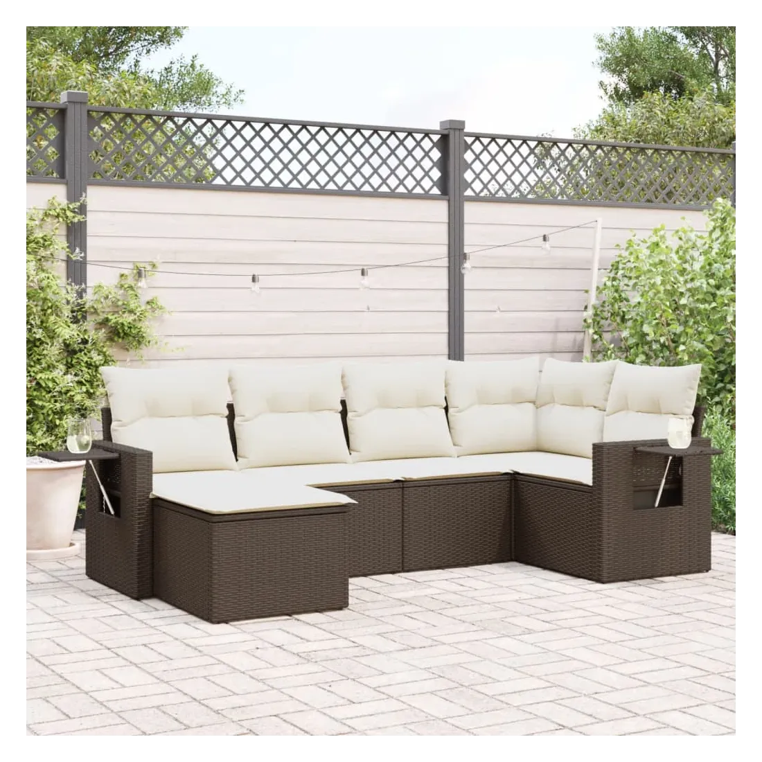 Cet ensemble de canapés de jardin est le complément parfait de votre arrière-cour, terrasse ou patio, offrant un espace confortable et accueillant pour discuter avec la famille et les amis ou simplement se détendre et profiter de l'extérieur. Matériau durable : la résine tressée, également connue sous le nom de poly rotin, est un matériau synthétique solide et nécessitant peu d'entretien qui ressemble au rotin naturel. Il est léger, facile à nettoyer et couramment utilisé pour les meubles d'extérieur en raison de sa durabilité et de ses propriétés de résistance aux intempéries.Fonction de rangement avec sac résistant à l'eau : le mobilier de jardin dispose d'un espace de rangement sous l'assise, complété par un sac résistant à l'eau pour ranger coussins, jouets et autres objets. Le sac intérieur peut être solidement fixé au mobilier d'extérieur grâce à des attaches auto-agrippantes pour plus de stabilité.Table d'appoint pratique : ce mobilier d'extérieur comprend une table d'appoint pliable avec un ressort à gaz sur les accoudoirs, offrant un endroit pratique pour garder vos essentiels à portée de main.Housse amovible et lavable : ces coussins de siège sont dotés de housses amovibles pour un lavage et un entretien faciles.Conception modulaire : cet ensemble de meubles d'extérieur a une conception modulaire, ce qui le rend complètement flexible et facile à déplacer, afin que vous puissiez créer un agencement de meubles d'extérieur personnalisé. Bon à savoir :Pour que vos meubles d'extérieur restent beaux, nous vous recommandons de les protéger avec une housse imperméable.