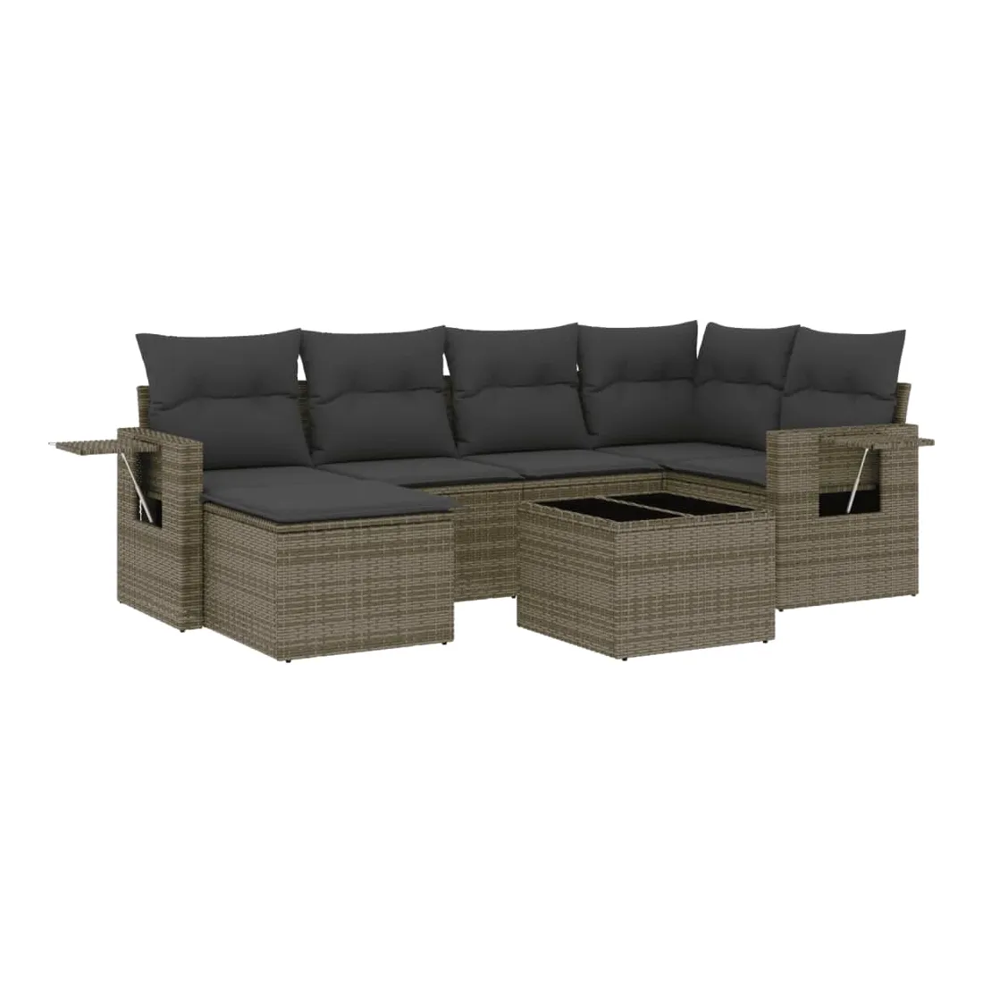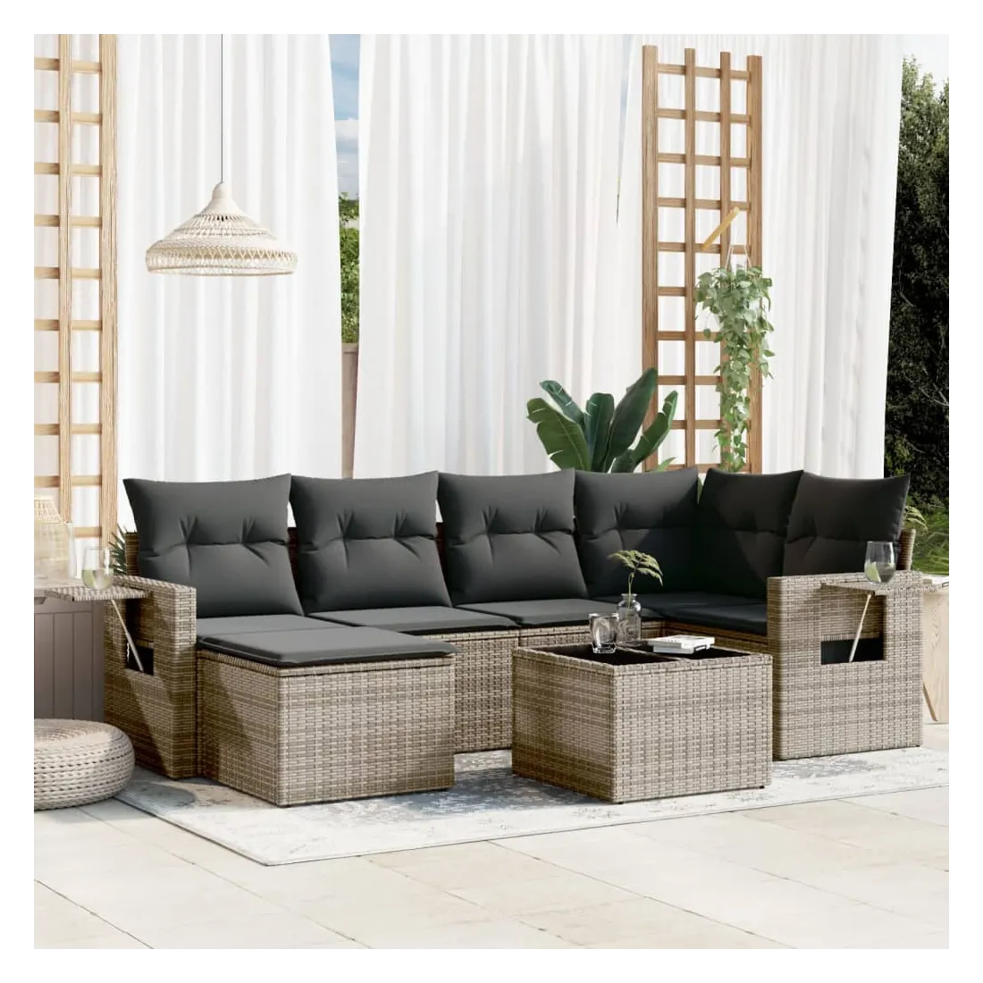 Cet ensemble de canapés de jardin est le complément parfait de votre arrière-cour, terrasse ou patio, offrant un espace confortable et accueillant pour discuter avec la famille et les amis ou simplement se détendre et profiter de l'extérieur. Matériau durable : la résine tressée, également connue sous le nom de poly rotin, est un matériau synthétique solide et nécessitant peu d'entretien qui ressemble au rotin naturel. Il est léger, facile à nettoyer et couramment utilisé pour les meubles d'extérieur en raison de sa durabilité et de ses propriétés de résistance aux intempéries.Fonction de rangement avec sac résistant à l'eau : le mobilier de jardin dispose d'un espace de rangement sous l'assise, complété par un sac résistant à l'eau pour ranger coussins, jouets et autres objets. Le sac intérieur peut être solidement fixé au mobilier d'extérieur grâce à des attaches auto-agrippantes pour plus de stabilité.Table d'appoint pratique : ce mobilier d'extérieur comprend une table d'appoint pliable avec un ressort à gaz sur les accoudoirs, offrant un endroit pratique pour garder vos essentiels à portée de main.Housse amovible et lavable : ces coussins de siège sont dotés de housses amovibles pour un lavage et un entretien faciles.Conception modulaire : cet ensemble de meubles d'extérieur a une conception modulaire, ce qui le rend complètement flexible et facile à déplacer, afin que vous puissiez créer un agencement de meubles d'extérieur personnalisé. Bon à savoir :Pour que vos meubles d'extérieur restent beaux, nous vous recommandons de les protéger avec une housse imperméable.