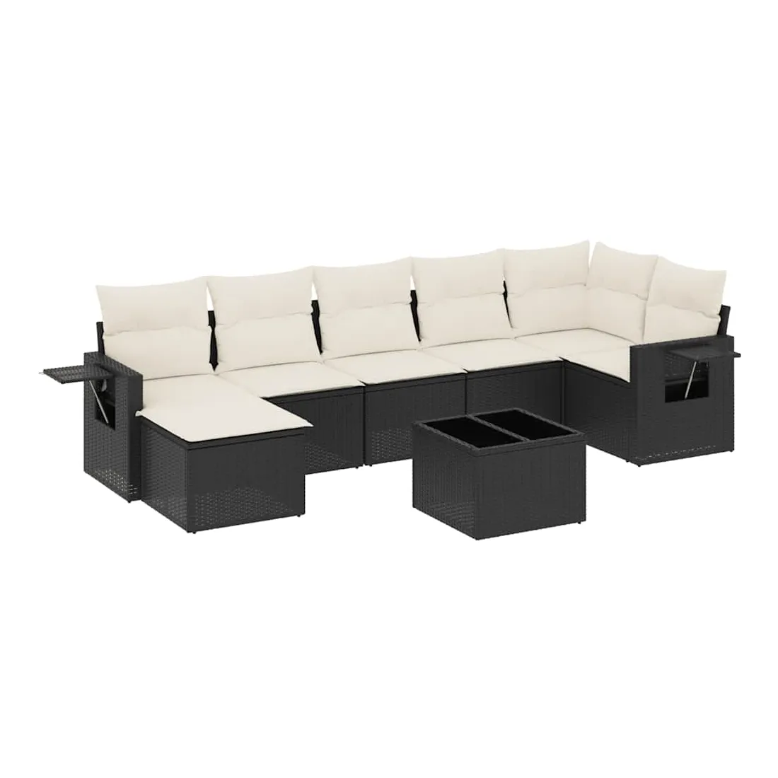 Salon de jardin 8 pcs avec coussins noir résine tressée