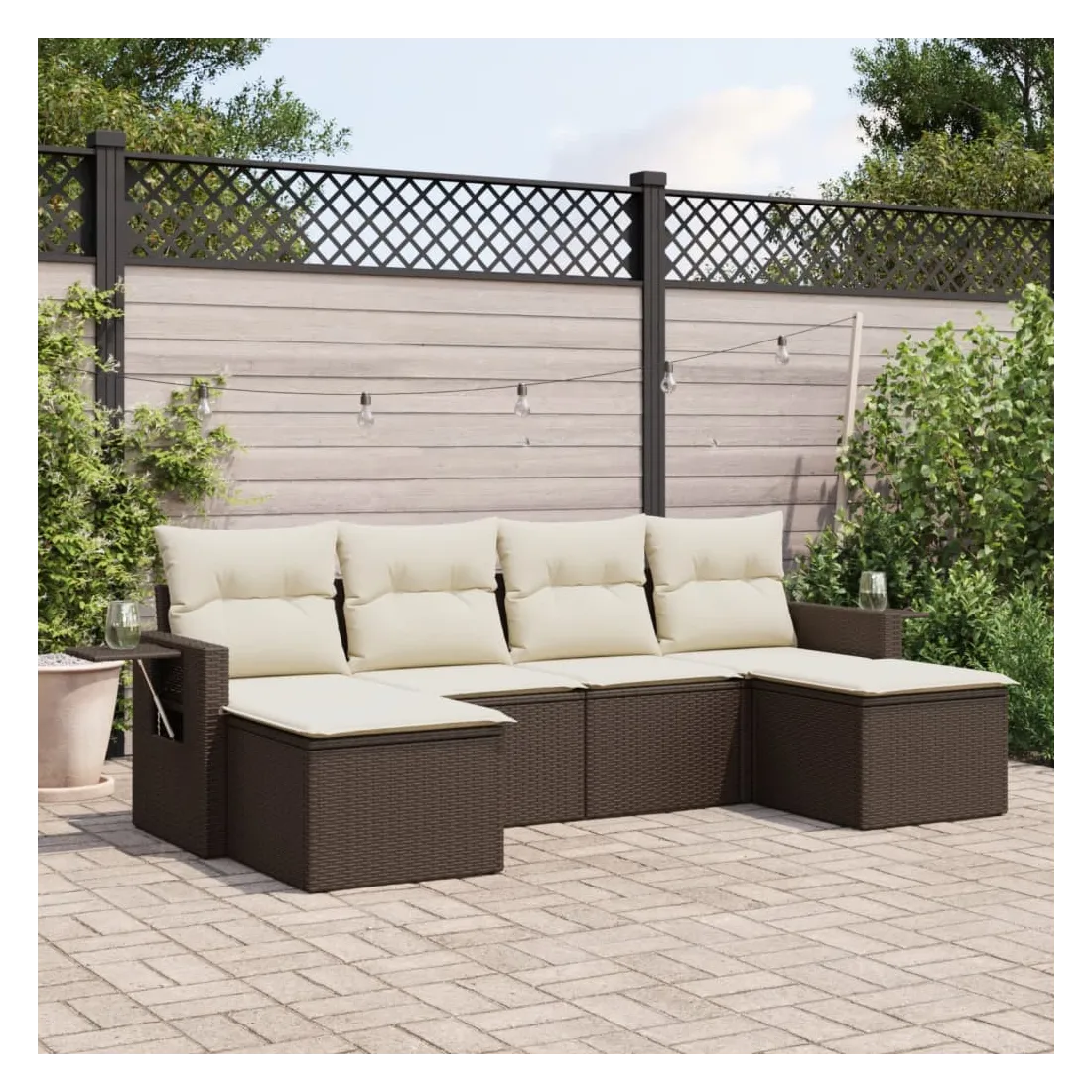 Cet ensemble de canapés de jardin est le complément parfait de votre arrière-cour, terrasse ou patio, offrant un espace confortable et accueillant pour discuter avec la famille et les amis ou simplement se détendre et profiter de l'extérieur. Matériau durable : la résine tressée, également connue sous le nom de poly rotin, est un matériau synthétique solide et nécessitant peu d'entretien qui ressemble au rotin naturel. Il est léger, facile à nettoyer et couramment utilisé pour les meubles d'extérieur en raison de sa durabilité et de ses propriétés de résistance aux intempéries.Fonction de rangement avec sac résistant à l'eau : le mobilier de jardin dispose d'un espace de rangement sous l'assise, complété par un sac résistant à l'eau pour ranger coussins, jouets et autres objets. Le sac intérieur peut être solidement fixé au mobilier d'extérieur grâce à des attaches auto-agrippantes pour plus de stabilité.Table d'appoint pratique : ce mobilier d'extérieur comprend une table d'appoint pliable avec un ressort à gaz sur les accoudoirs, offrant un endroit pratique pour garder vos essentiels à portée de main.Housse amovible et lavable : ces coussins de siège sont dotés de housses amovibles pour un lavage et un entretien faciles.Conception modulaire : cet ensemble de meubles d'extérieur a une conception modulaire, ce qui le rend complètement flexible et facile à déplacer, afin que vous puissiez créer un agencement de meubles d'extérieur personnalisé. Bon à savoir :Pour que vos meubles d'extérieur restent beaux, nous vous recommandons de les protéger avec une housse imperméable.
