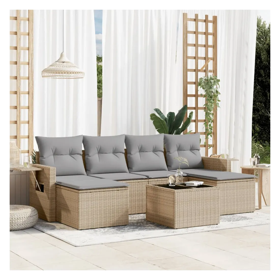 Cet ensemble de canapés de jardin est le complément parfait de votre arrière-cour, terrasse ou patio, offrant un espace confortable et accueillant pour discuter avec la famille et les amis ou simplement se détendre et profiter de l'extérieur. Matériau durable : la résine tressée, également connue sous le nom de poly rotin, est un matériau synthétique solide et nécessitant peu d'entretien qui ressemble au rotin naturel. Il est léger, facile à nettoyer et couramment utilisé pour les meubles d'extérieur en raison de sa durabilité et de ses propriétés de résistance aux intempéries.Fonction de rangement avec sac résistant à l'eau : le mobilier de jardin dispose d'un espace de rangement sous l'assise, complété par un sac résistant à l'eau pour ranger coussins, jouets et autres objets. Le sac intérieur peut être solidement fixé au mobilier d'extérieur grâce à des attaches auto-agrippantes pour plus de stabilité.Table d'appoint pratique : ce mobilier d'extérieur comprend une table d'appoint pliable avec un ressort à gaz sur les accoudoirs, offrant un endroit pratique pour garder vos essentiels à portée de main.Housse amovible et lavable : ces coussins de siège sont dotés de housses amovibles pour un lavage et un entretien faciles.Conception modulaire : cet ensemble de meubles d'extérieur a une conception modulaire, ce qui le rend complètement flexible et facile à déplacer, afin que vous puissiez créer un agencement de meubles d'extérieur personnalisé. Bon à savoir :Pour que vos meubles d'extérieur restent beaux, nous vous recommandons de les protéger avec une housse imperméable.