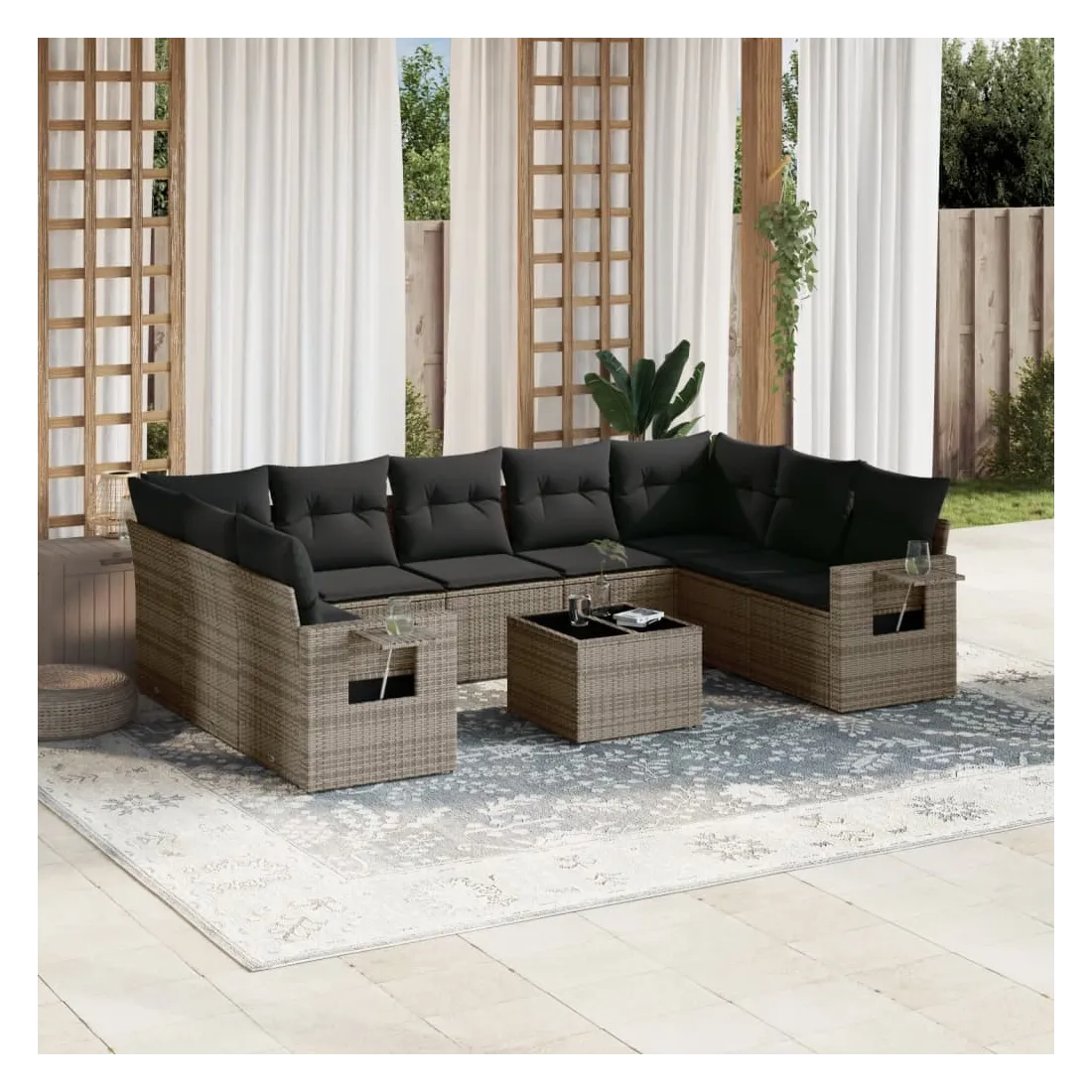 Salon de jardin avec coussins 10 pcs gris résine tressée