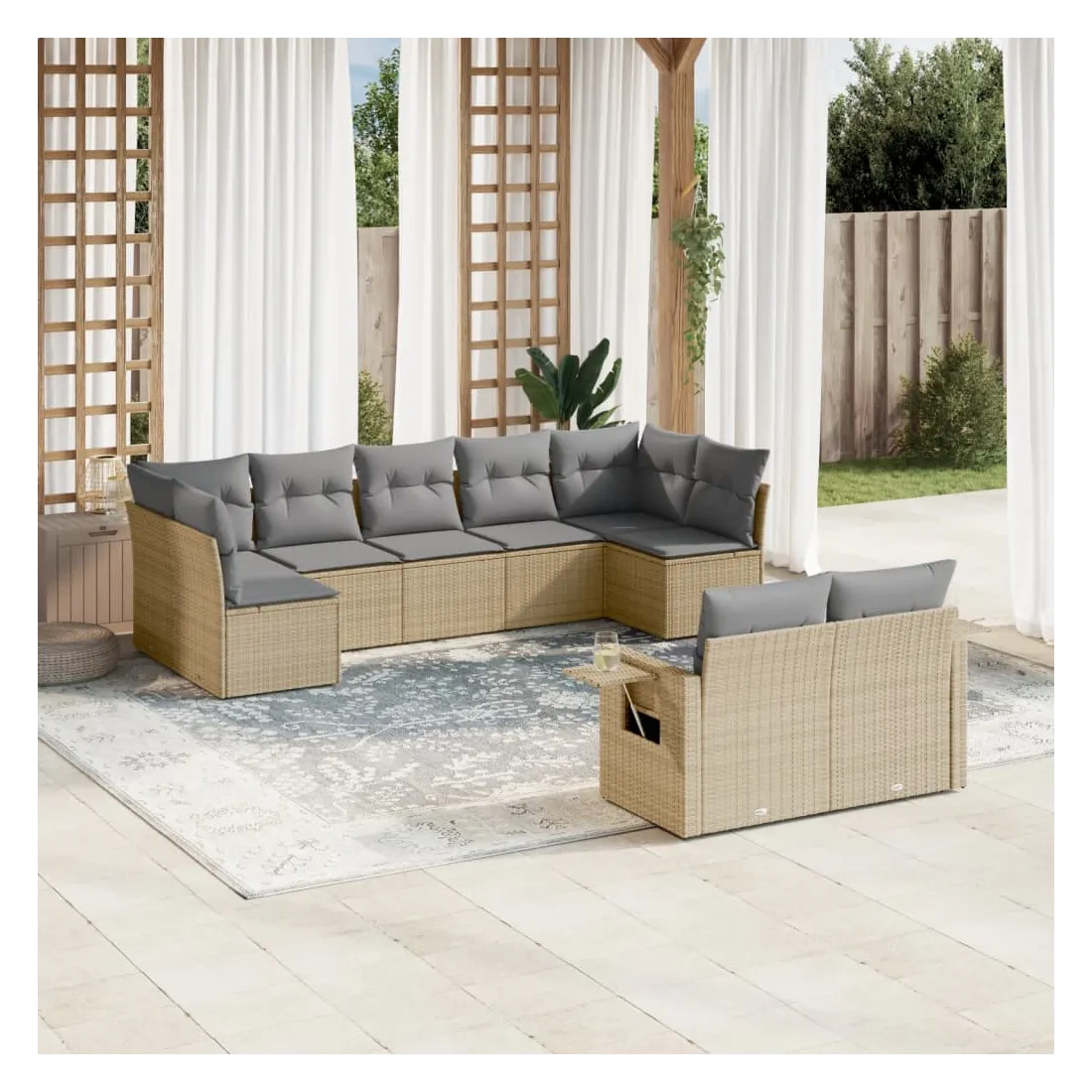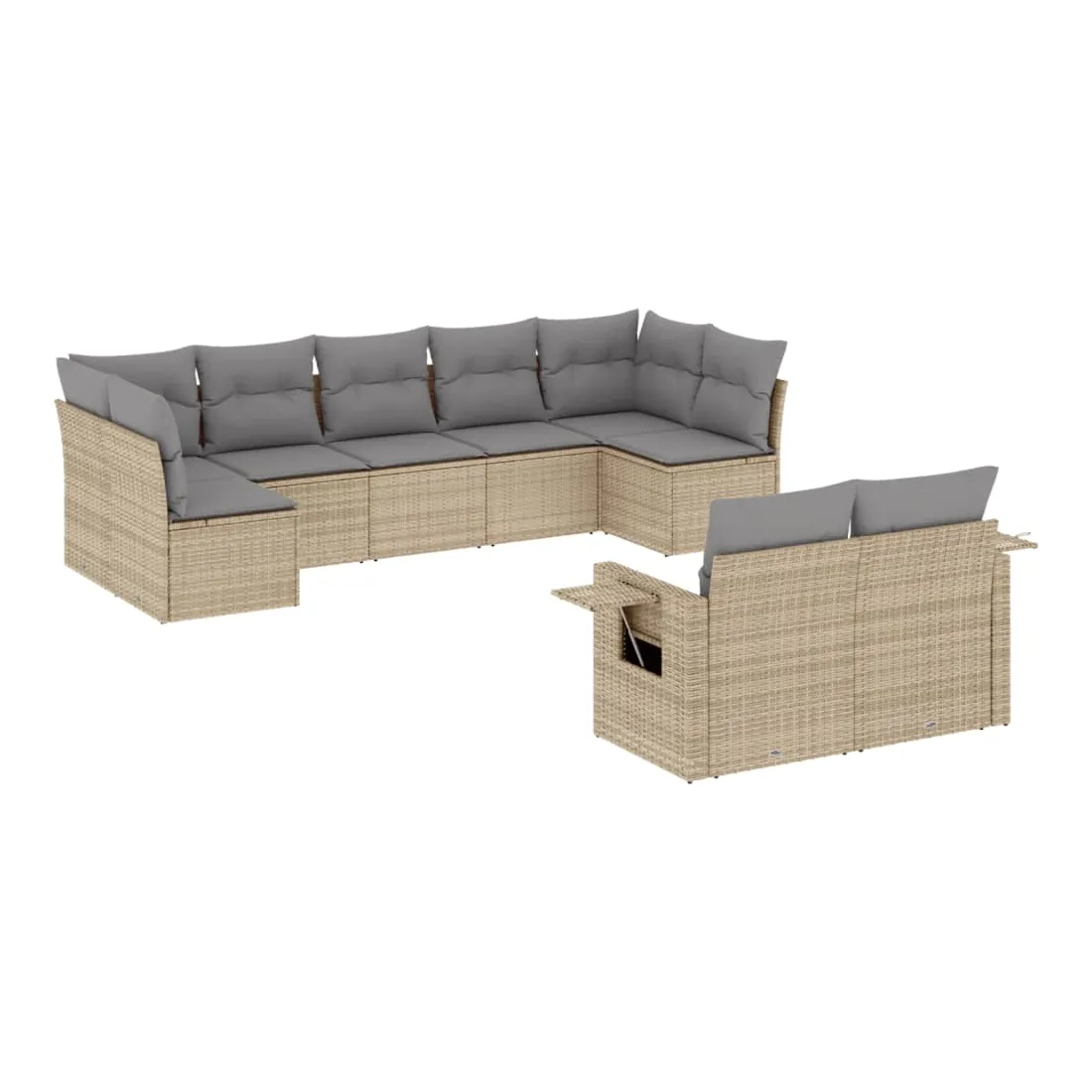 Salon de jardin avec coussins 9 pcs beige résine tressée