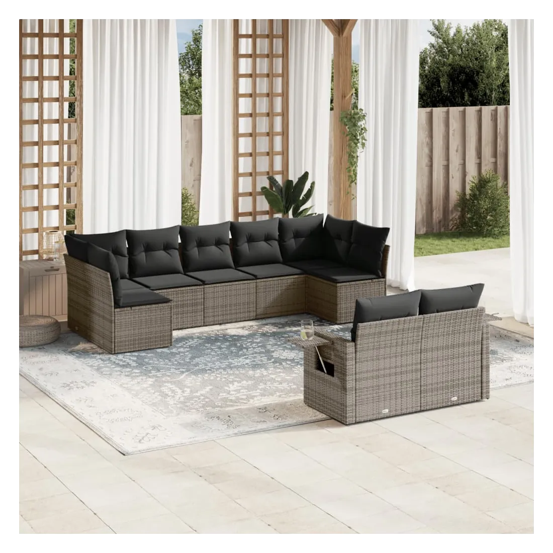 Salon de jardin 9 pcs avec coussins gris résine tressée
