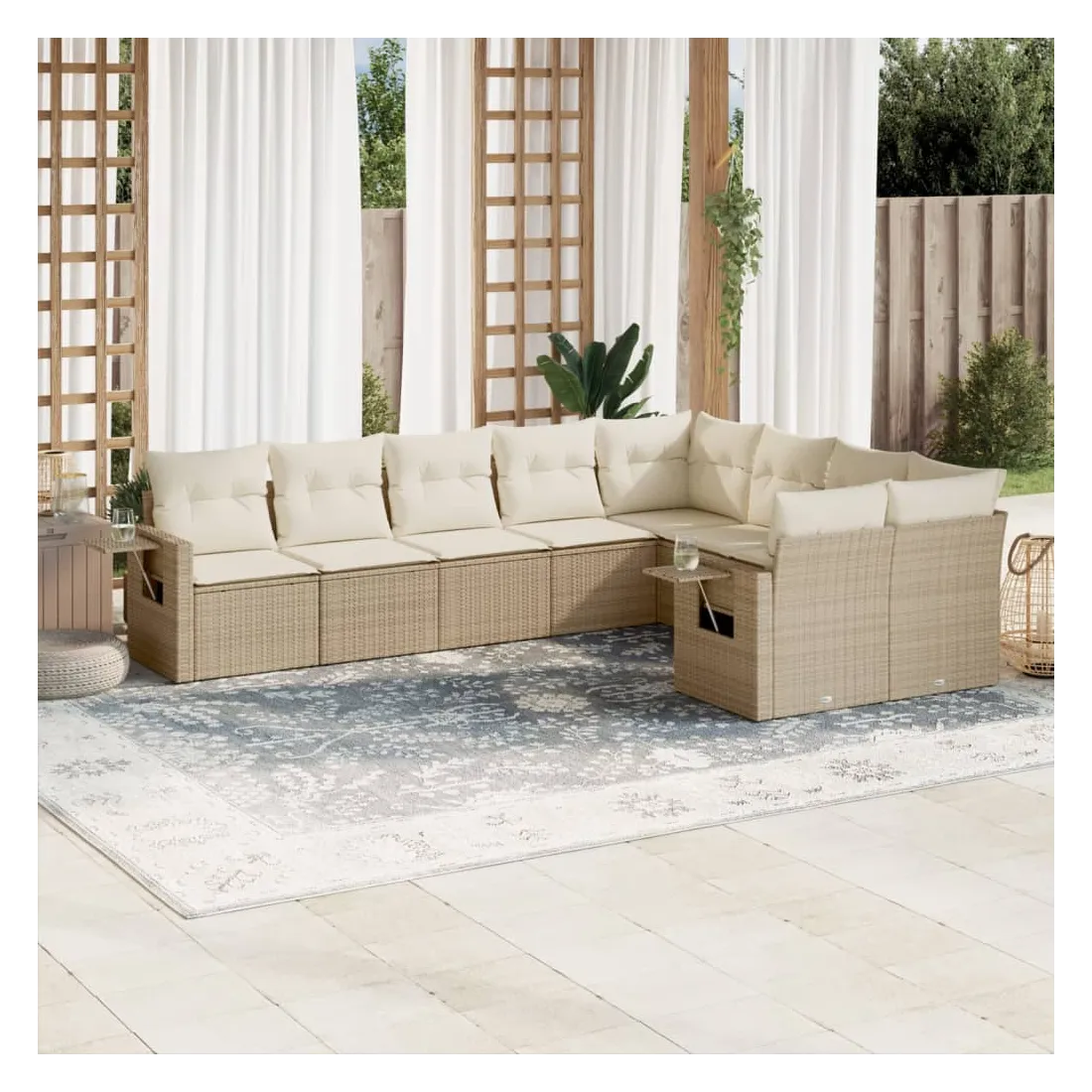 Cet ensemble de canapés de jardin est le complément parfait de votre arrière-cour, terrasse ou patio, offrant un espace confortable et accueillant pour discuter avec la famille et les amis ou simplement se détendre et profiter de l'extérieur. Matériau durable : la résine tressée, également connue sous le nom de poly rotin, est un matériau synthétique solide et nécessitant peu d'entretien qui ressemble au rotin naturel. Il est léger, facile à nettoyer et couramment utilisé pour les meubles d'extérieur en raison de sa durabilité et de ses propriétés de résistance aux intempéries.Fonction de rangement avec sac résistant à l'eau : le mobilier de jardin dispose d'un espace de rangement sous l'assise, complété par un sac résistant à l'eau pour ranger coussins, jouets et autres objets. Le sac intérieur peut être solidement fixé au mobilier d'extérieur grâce à des attaches auto-agrippantes pour plus de stabilité.Table d'appoint pratique : ce mobilier d'extérieur comprend une table d'appoint pliable avec un ressort à gaz sur les accoudoirs, offrant un endroit pratique pour garder vos essentiels à portée de main.Housse amovible et lavable : ces coussins de siège sont dotés de housses amovibles pour un lavage et un entretien faciles.Conception modulaire : cet ensemble de meubles d'extérieur a une conception modulaire, ce qui le rend complètement flexible et facile à déplacer, afin que vous puissiez créer un agencement de meubles d'extérieur personnalisé. Bon à savoir :Pour que vos meubles d'extérieur restent beaux, nous vous recommandons de les protéger avec une housse imperméable.