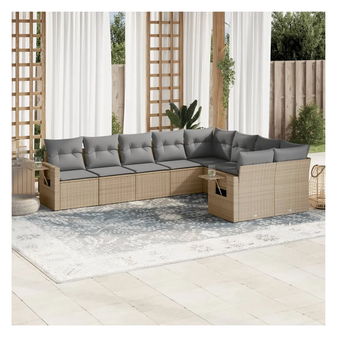 Cet ensemble de canapés de jardin est le complément parfait de votre arrière-cour, terrasse ou patio, offrant un espace confortable et accueillant pour discuter avec la famille et les amis ou simplement se détendre et profiter de l'extérieur. Matériau durable : la résine tressée, également connue sous le nom de poly rotin, est un matériau synthétique solide et nécessitant peu d'entretien qui ressemble au rotin naturel. Il est léger, facile à nettoyer et couramment utilisé pour les meubles d'extérieur en raison de sa durabilité et de ses propriétés de résistance aux intempéries.Fonction de rangement avec sac résistant à l'eau : le mobilier de jardin dispose d'un espace de rangement sous l'assise, complété par un sac résistant à l'eau pour ranger coussins, jouets et autres objets. Le sac intérieur peut être solidement fixé au mobilier d'extérieur grâce à des attaches auto-agrippantes pour plus de stabilité.Table d'appoint pratique : ce mobilier d'extérieur comprend une table d'appoint pliable avec un ressort à gaz sur les accoudoirs, offrant un endroit pratique pour garder vos essentiels à portée de main.Housse amovible et lavable : ces coussins de siège sont dotés de housses amovibles pour un lavage et un entretien faciles.Conception modulaire : cet ensemble de meubles d'extérieur a une conception modulaire, ce qui le rend complètement flexible et facile à déplacer, afin que vous puissiez créer un agencement de meubles d'extérieur personnalisé. Bon à savoir :Pour que vos meubles d'extérieur restent beaux, nous vous recommandons de les protéger avec une housse imperméable.