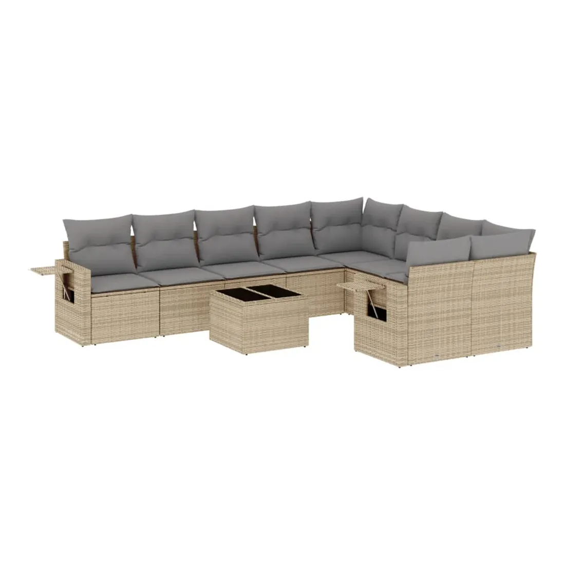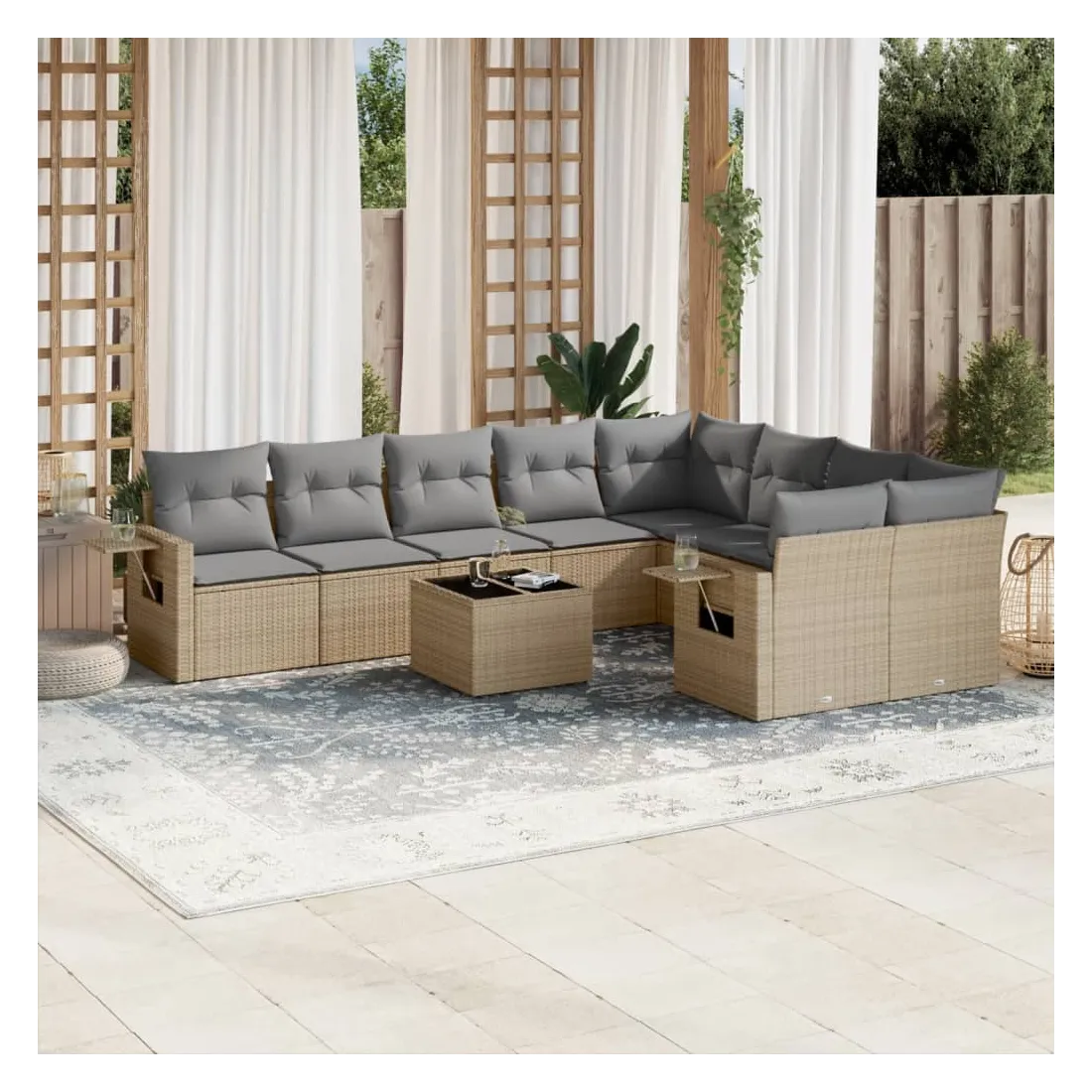 Salon de jardin avec coussins 10 pcs beige résine tressée