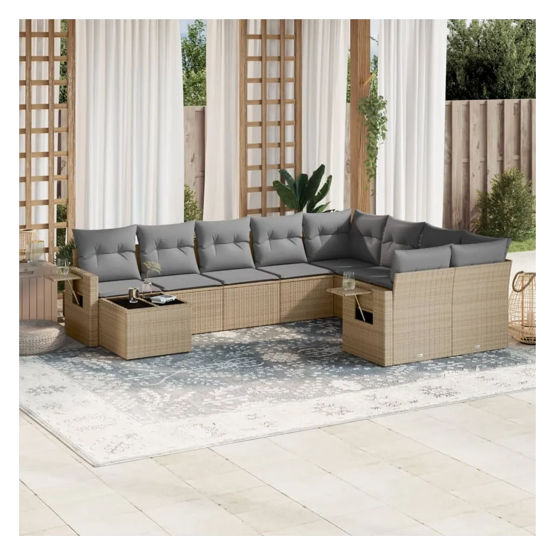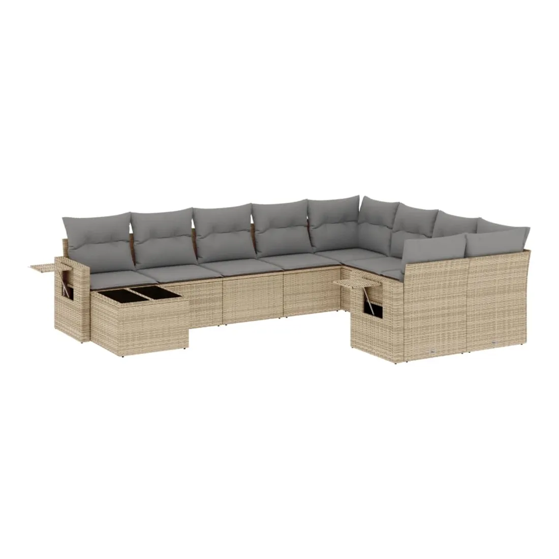 Salon de jardin avec coussins 10 pcs beige résine tressée