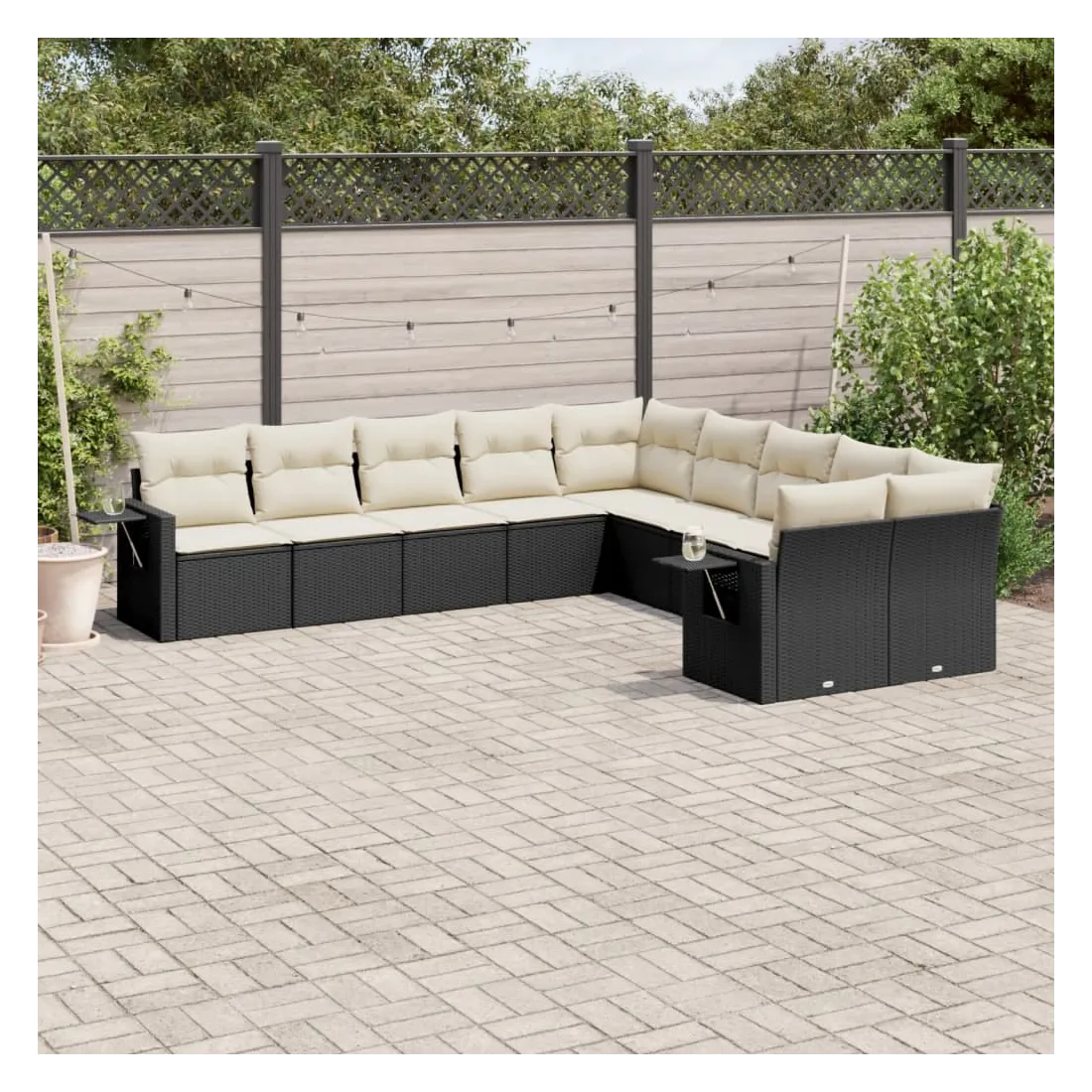 Cet ensemble de canapés de jardin est le complément parfait de votre arrière-cour, terrasse ou patio, offrant un espace confortable et accueillant pour discuter avec la famille et les amis ou simplement se détendre et profiter de l'extérieur. Matériau durable : la résine tressée, également connue sous le nom de poly rotin, est un matériau synthétique solide et nécessitant peu d'entretien qui ressemble au rotin naturel. Il est léger, facile à nettoyer et couramment utilisé pour les meubles d'extérieur en raison de sa durabilité et de ses propriétés de résistance aux intempéries.Fonction de rangement avec sac résistant à l'eau : le mobilier de jardin dispose d'un espace de rangement sous l'assise, complété par un sac résistant à l'eau pour ranger coussins, jouets et autres objets. Le sac intérieur peut être solidement fixé au mobilier d'extérieur grâce à des attaches auto-agrippantes pour plus de stabilité.Table d'appoint pratique : ce mobilier d'extérieur comprend une table d'appoint pliable avec un ressort à gaz sur les accoudoirs, offrant un endroit pratique pour garder vos essentiels à portée de main.Housse amovible et lavable : ces coussins de siège sont dotés de housses amovibles pour un lavage et un entretien faciles.Conception modulaire : cet ensemble de meubles d'extérieur a une conception modulaire, ce qui le rend complètement flexible et facile à déplacer, afin que vous puissiez créer un agencement de meubles d'extérieur personnalisé. Bon à savoir :Pour que vos meubles d'extérieur restent beaux, nous vous recommandons de les protéger avec une housse imperméable.