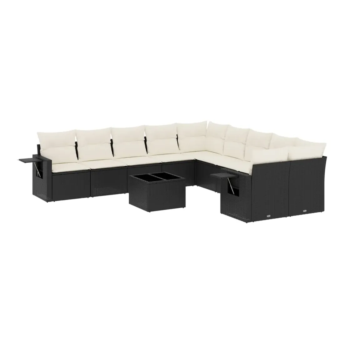 Salon de jardin 11 pcs avec coussins noir résine tressée