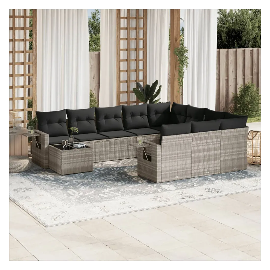 Cet ensemble de canapés de jardin est le complément parfait de votre arrière-cour, terrasse ou patio, offrant un espace confortable et accueillant pour discuter avec la famille et les amis ou simplement se détendre et profiter de l'extérieur. Matériau durable : la résine tressée, également connue sous le nom de poly rotin, est un matériau synthétique solide et nécessitant peu d'entretien qui ressemble au rotin naturel. Il est léger, facile à nettoyer et couramment utilisé pour les meubles d'extérieur en raison de sa durabilité et de ses propriétés de résistance aux intempéries.Fonction de rangement avec sac résistant à l'eau : le mobilier de jardin dispose d'un espace de rangement sous l'assise, complété par un sac résistant à l'eau pour ranger coussins, jouets et autres objets. Le sac intérieur peut être solidement fixé au mobilier d'extérieur grâce à des attaches auto-agrippantes pour plus de stabilité.Table d'appoint pratique : ce mobilier d'extérieur comprend une table d'appoint pliable avec un ressort à gaz sur les accoudoirs, offrant un endroit pratique pour garder vos essentiels à portée de main.Housse amovible et lavable : ces coussins de siège sont dotés de housses amovibles pour un lavage et un entretien faciles.Conception modulaire : cet ensemble de meubles d'extérieur a une conception modulaire, ce qui le rend complètement flexible et facile à déplacer, afin que vous puissiez créer un agencement de meubles d'extérieur personnalisé. Bon à savoir :Pour que vos meubles d'extérieur restent beaux, nous vous recommandons de les protéger avec une housse imperméable.