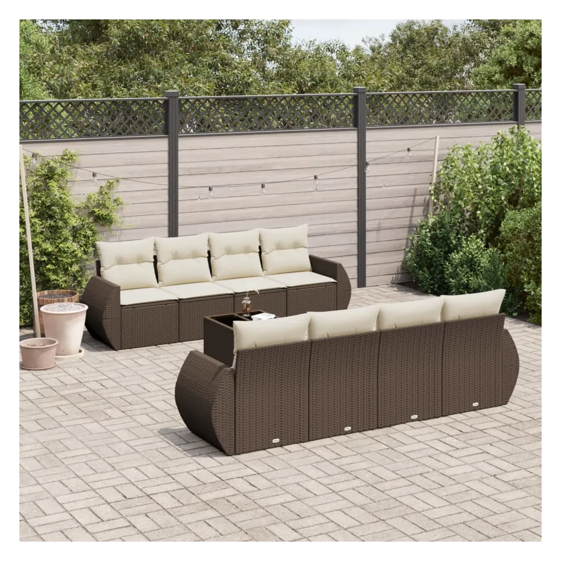 Cet ensemble de canapés de jardin est le complément parfait de votre arrière-cour, terrasse ou patio, offrant un espace confortable et accueillant pour discuter avec la famille et les amis ou simplement se détendre et profiter de l'extérieur. Matériau durable : la résine tressée, également connue sous le nom de poly rotin, est un matériau synthétique solide et nécessitant peu d'entretien qui ressemble au rotin naturel. Il est léger, facile à nettoyer et couramment utilisé pour les meubles d'extérieur en raison de sa durabilité et de ses propriétés de résistance aux intempéries.Fonction de rangement avec sac résistant à l'eau : chaque siège de jardin dispose d'un espace de rangement sous l'assise, complété par un sac résistant à l'eau pour ranger les coussins, les jouets et d'autres objets. Les sacs intérieurs sont dotés d'un couvercle et peuvent être solidement fixés aux sièges à l'aide de bandes auto-agrippantes pour plus de stabilité.Dessus en verre : le dessus de la table d'extérieur est fabriqué en verre trempé solide et durable, ce qui le rend facile à nettoyer avec un chiffon humide et ajoute une touche d'élégance à votre espace extérieur.Housse amovible et lavable : ces coussins de siège sont dotés de housses amovibles pour un lavage et un entretien faciles.Conception modulaire : cet ensemble de meubles d'extérieur a une conception modulaire, ce qui le rend complètement flexible et facile à déplacer, afin que vous puissiez créer un agencement de meubles d'extérieur personnalisé. Bon à savoir :Pour que vos meubles d'extérieur restent beaux, nous vous recommandons de les protéger avec une housse imperméable.