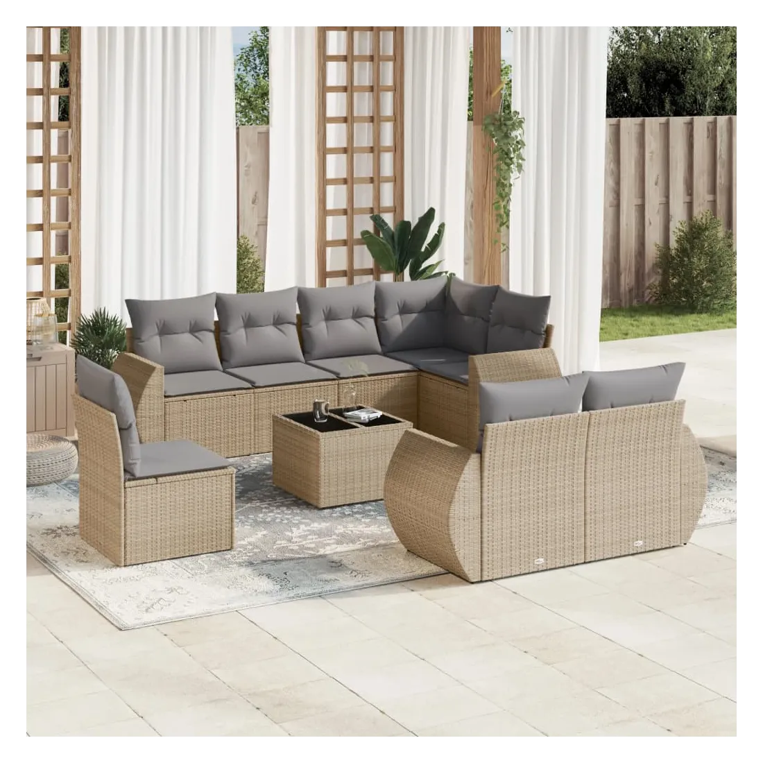 Salon de jardin avec coussins 9 pcs beige résine tressée