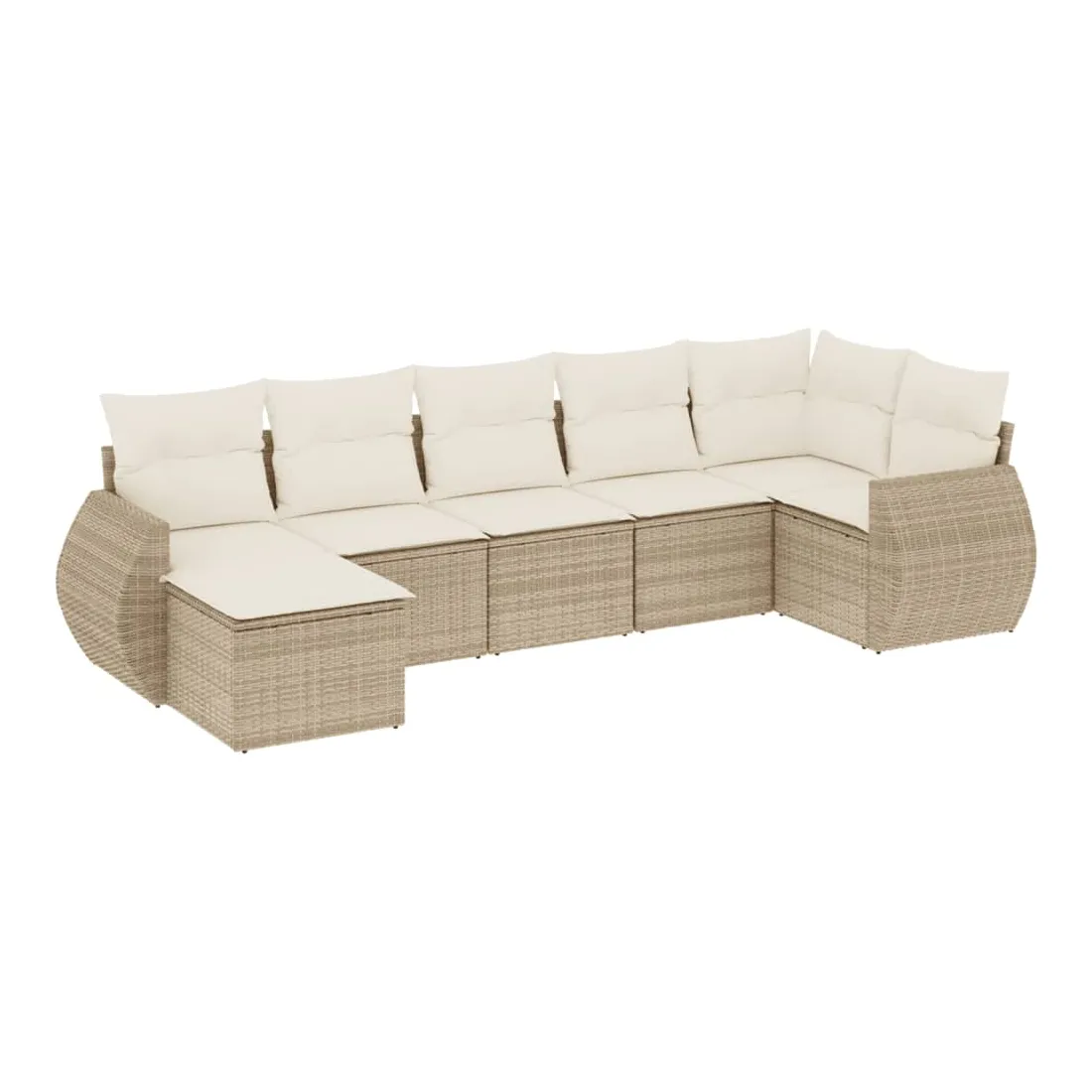 Salon de jardin avec coussins 7 pcs beige résine tressée