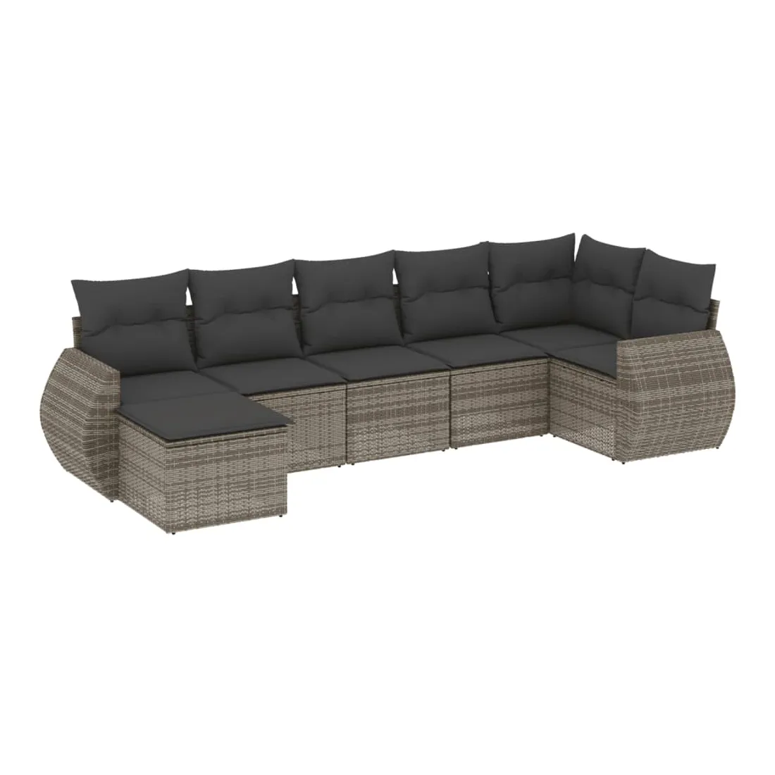 Salon de jardin avec coussins 7 pcs gris résine tressée