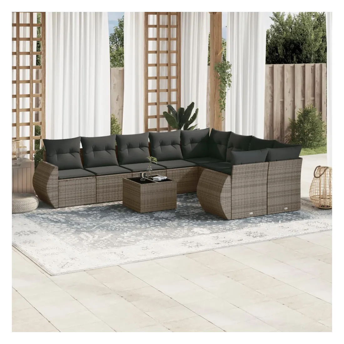 Salon de jardin avec coussins 10 pcs gris résine tressée