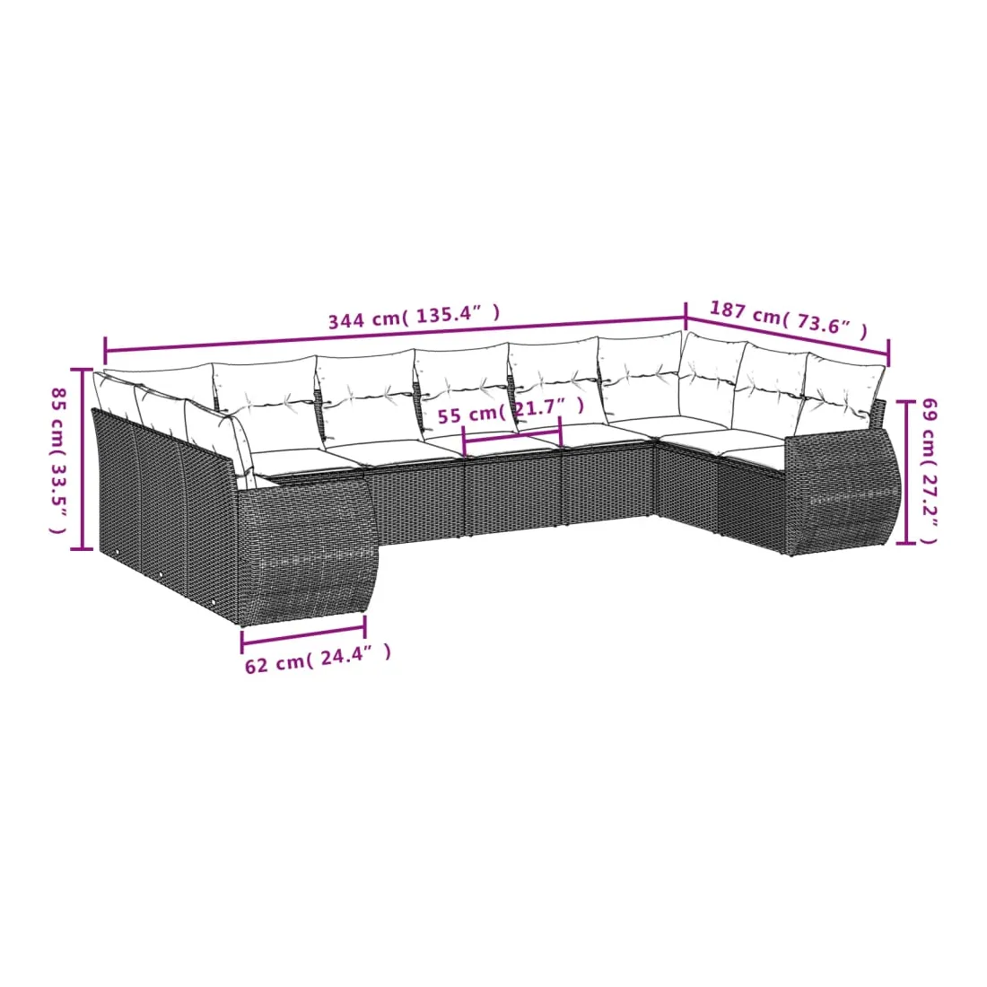 Salon de jardin 11 pcs avec coussins noir résine tressée