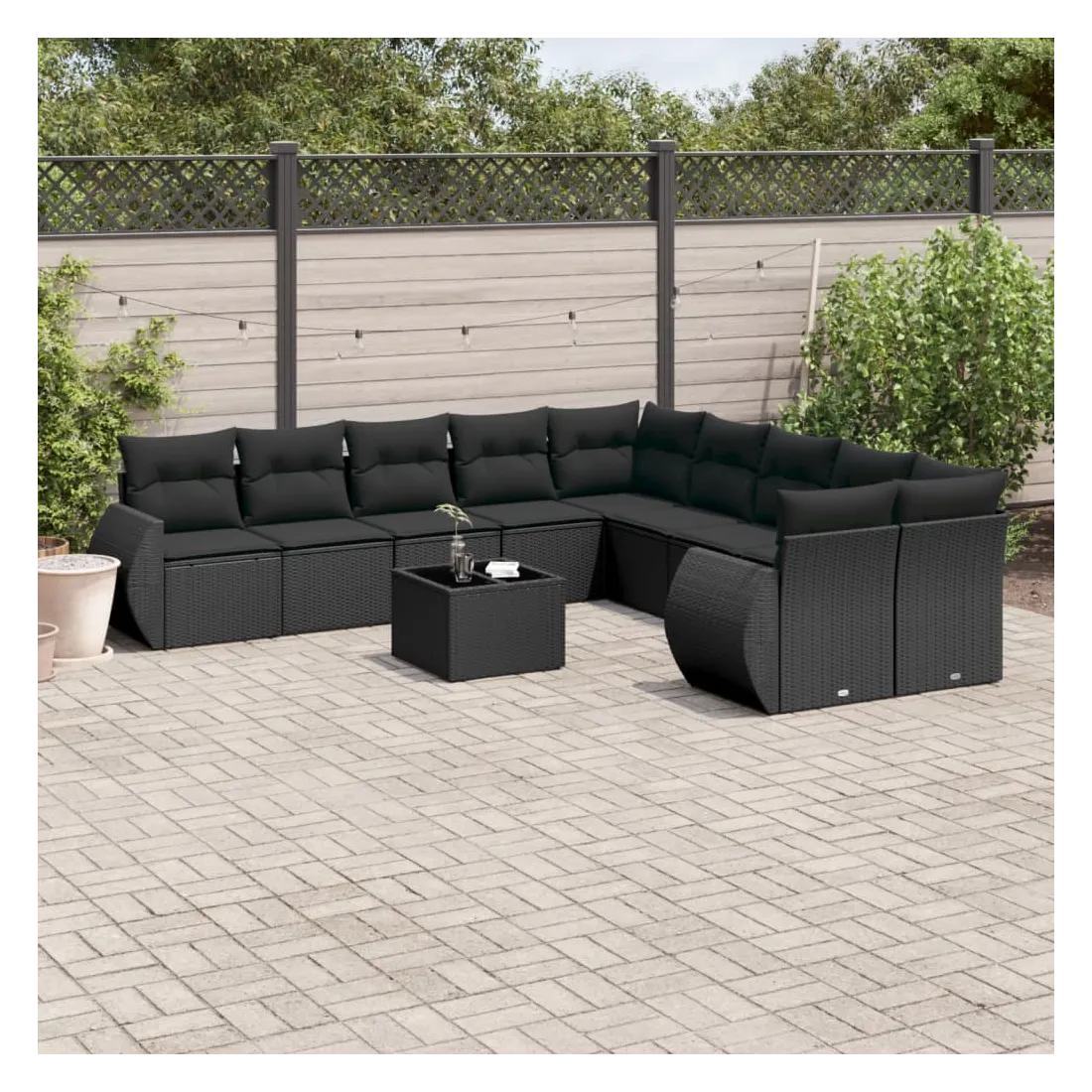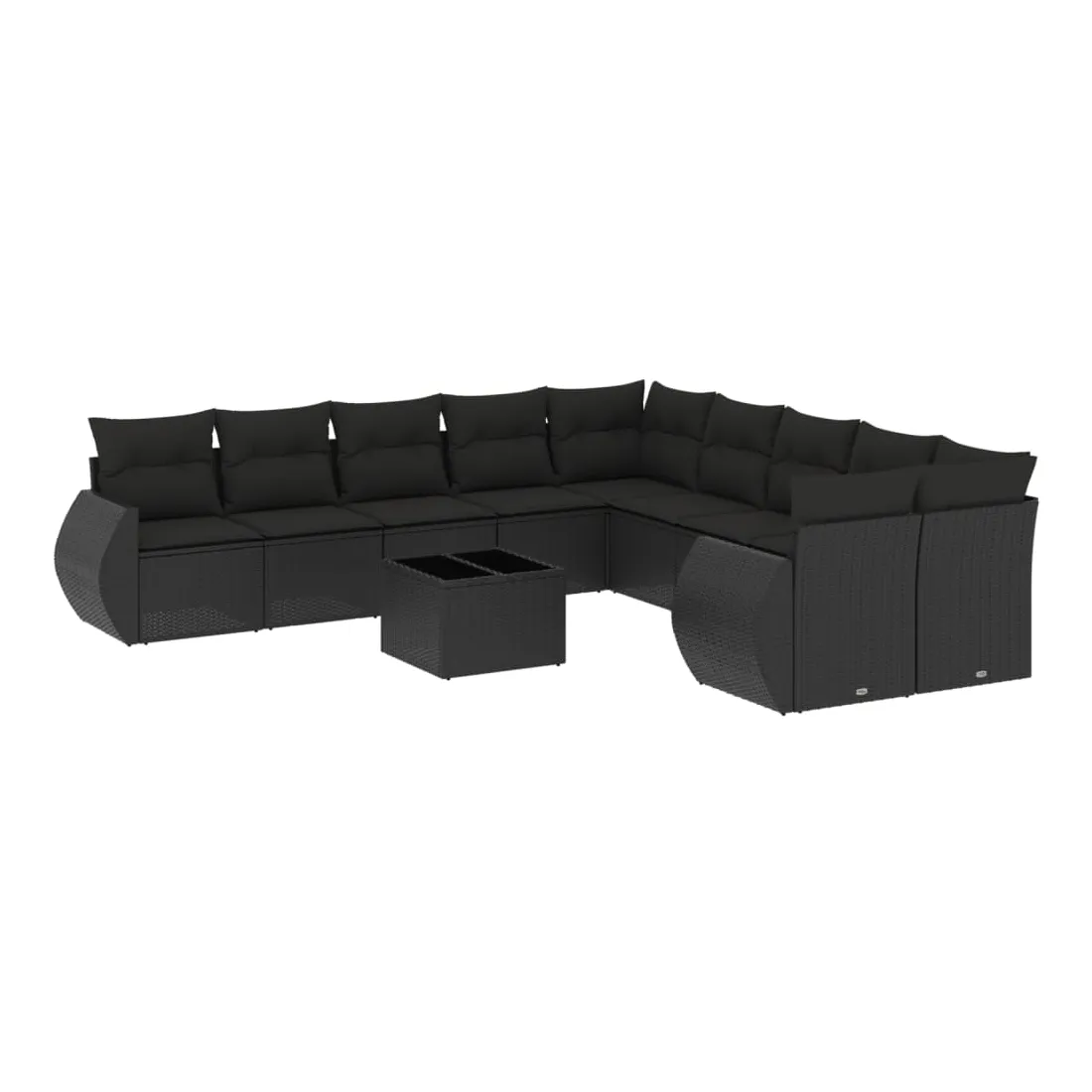 Salon de jardin 11 pcs avec coussins noir résine tressée