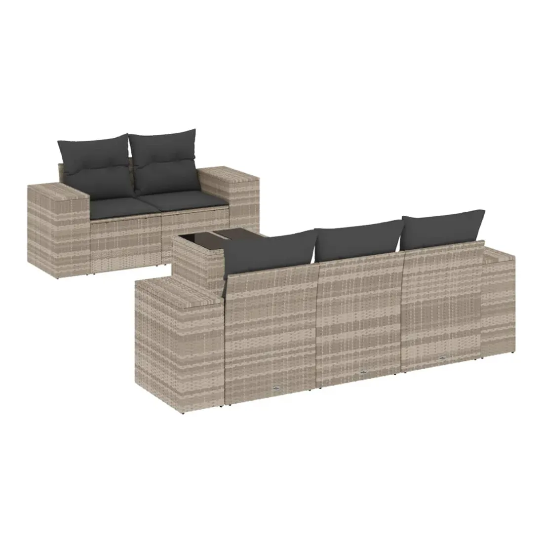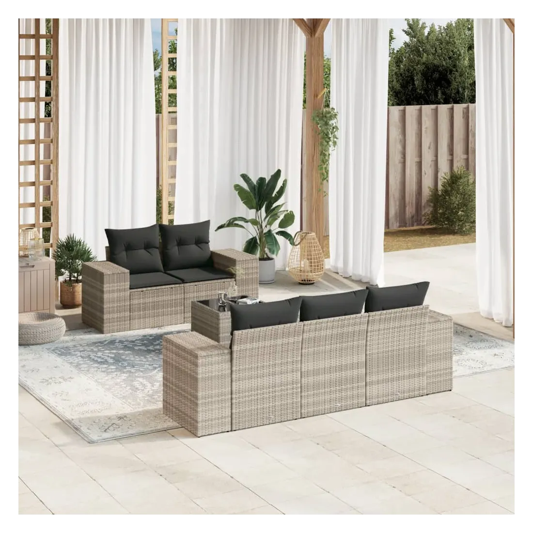 Cet ensemble de canapés de jardin est le complément parfait de votre arrière-cour, terrasse ou patio, offrant un espace confortable et accueillant pour discuter avec la famille et les amis ou simplement se détendre et profiter de l'extérieur. Matériau durable : la résine tressée, également connue sous le nom de poly rotin, est un matériau synthétique solide et nécessitant peu d'entretien qui ressemble au rotin naturel. Il est léger, facile à nettoyer et couramment utilisé pour les meubles d'extérieur en raison de sa durabilité et de ses propriétés de résistance aux intempéries.Fonction de rangement avec sac résistant à l'eau : le mobilier de jardin dispose d'un espace de rangement sous l'assise, complété par un sac résistant à l'eau pour ranger coussins, jouets et autres objets. Le sac intérieur peut être solidement fixé au mobilier d'extérieur grâce à des attaches auto-agrippantes pour plus de stabilité.Dessus en verre : le dessus de la table d'extérieur est fabriqué en verre trempé solide et durable, ce qui le rend facile à nettoyer avec un chiffon humide et ajoute une touche d'élégance à votre espace extérieur.Housse amovible et lavable : ces coussins de siège sont dotés de housses amovibles pour un lavage et un entretien faciles.Conception modulaire : cet ensemble de meubles d'extérieur a une conception modulaire, ce qui le rend complètement flexible et facile à déplacer, afin que vous puissiez créer un agencement de meubles d'extérieur personnalisé. Bon à savoir :Pour que vos meubles d'extérieur restent beaux, nous vous recommandons de les protéger avec une housse imperméable.