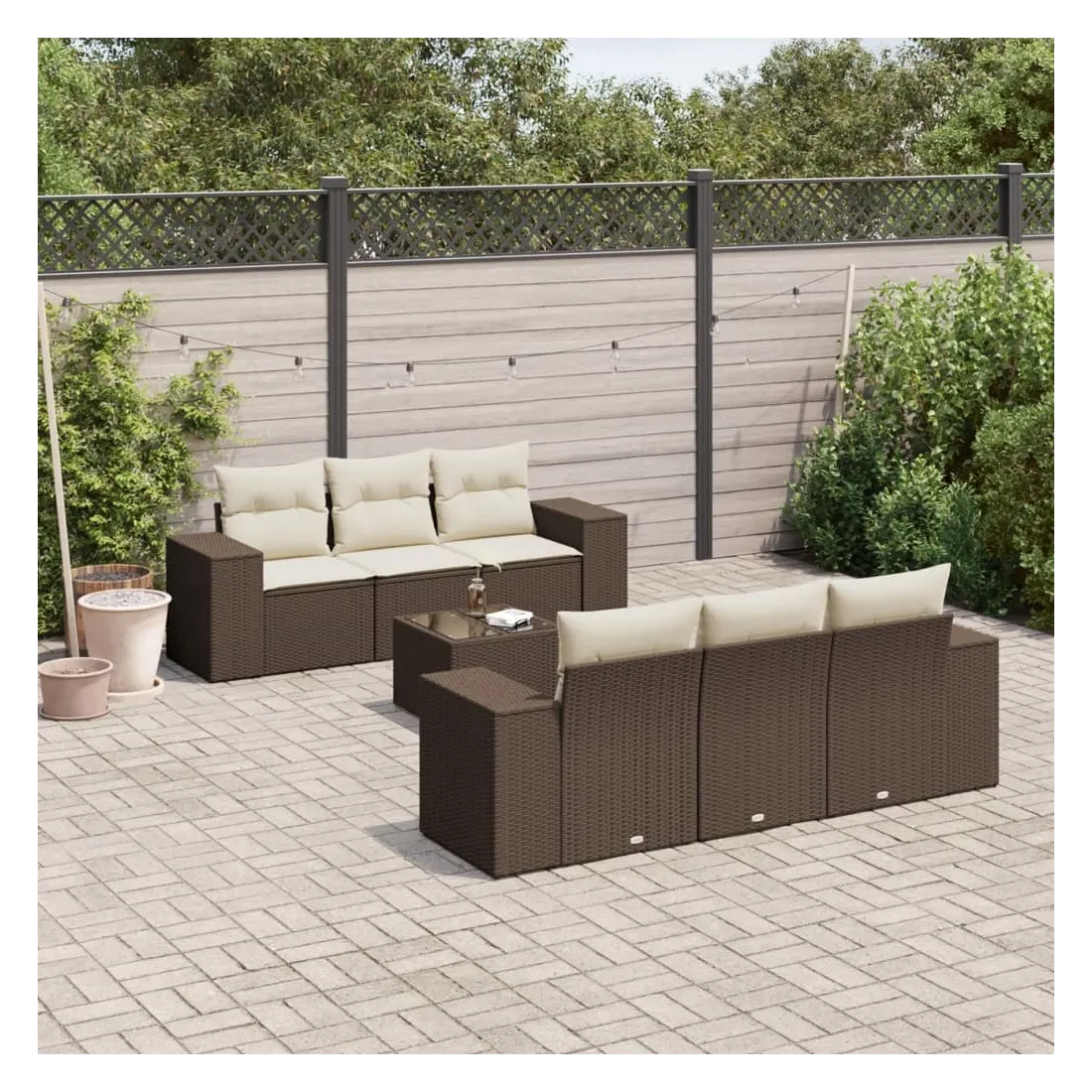 Cet ensemble de canapés de jardin est le complément parfait de votre arrière-cour, terrasse ou patio, offrant un espace confortable et accueillant pour discuter avec la famille et les amis ou simplement se détendre et profiter de l'extérieur. Matériau durable : la résine tressée, également connue sous le nom de poly rotin, est un matériau synthétique solide et nécessitant peu d'entretien qui ressemble au rotin naturel. Il est léger, facile à nettoyer et couramment utilisé pour les meubles d'extérieur en raison de sa durabilité et de ses propriétés de résistance aux intempéries.Fonction de rangement avec sac résistant à l'eau : le mobilier de jardin dispose d'un espace de rangement sous l'assise, complété par un sac résistant à l'eau pour ranger coussins, jouets et autres objets. Le sac intérieur peut être solidement fixé au mobilier d'extérieur grâce à des attaches auto-agrippantes pour plus de stabilité.Dessus en verre : le dessus de la table d'extérieur est fabriqué en verre trempé solide et durable, ce qui le rend facile à nettoyer avec un chiffon humide et ajoute une touche d'élégance à votre espace extérieur.Housse amovible et lavable : ces coussins de siège sont dotés de housses amovibles pour un lavage et un entretien faciles.Conception modulaire : cet ensemble de meubles d'extérieur a une conception modulaire, ce qui le rend complètement flexible et facile à déplacer, afin que vous puissiez créer un agencement de meubles d'extérieur personnalisé. Bon à savoir :Pour que vos meubles d'extérieur restent beaux, nous vous recommandons de les protéger avec une housse imperméable.