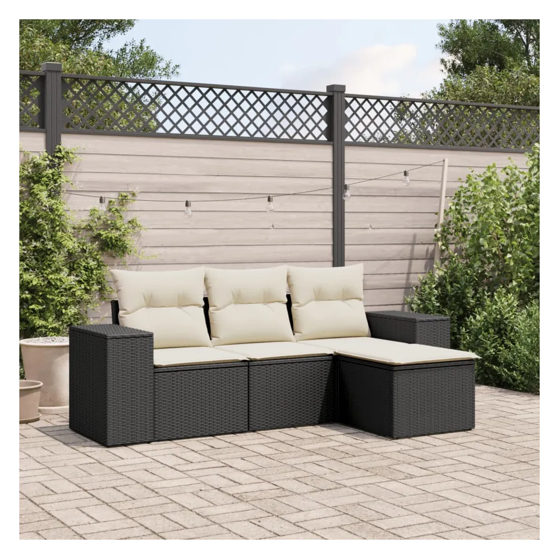 Cet ensemble de canapés de jardin est le complément parfait de votre arrière-cour, terrasse ou patio, offrant un espace confortable et accueillant pour discuter avec la famille et les amis ou simplement se détendre et profiter de l'extérieur. Matériau durable : la résine tressée, également connue sous le nom de poly rotin, est un matériau synthétique solide et nécessitant peu d'entretien qui ressemble au rotin naturel. Il est léger, facile à nettoyer et couramment utilisé pour les meubles d'extérieur en raison de sa durabilité et de ses propriétés de résistance aux intempéries.Fonction de rangement avec sac résistant à l'eau : le mobilier de jardin dispose d'un espace de rangement sous l'assise, complété par un sac résistant à l'eau pour ranger coussins, jouets et autres objets. Le sac intérieur peut être solidement fixé au mobilier d'extérieur grâce à des attaches auto-agrippantes pour plus de stabilité.Housse amovible et lavable : ces coussins de siège sont dotés de housses amovibles pour un lavage et un entretien faciles.Conception modulaire : cet ensemble de meubles d'extérieur a une conception modulaire, ce qui le rend complètement flexible et facile à déplacer, afin que vous puissiez créer un agencement de meubles d'extérieur personnalisé. Bon à savoir :Pour que vos meubles d'extérieur restent beaux, nous vous recommandons de les protéger avec une housse imperméable.