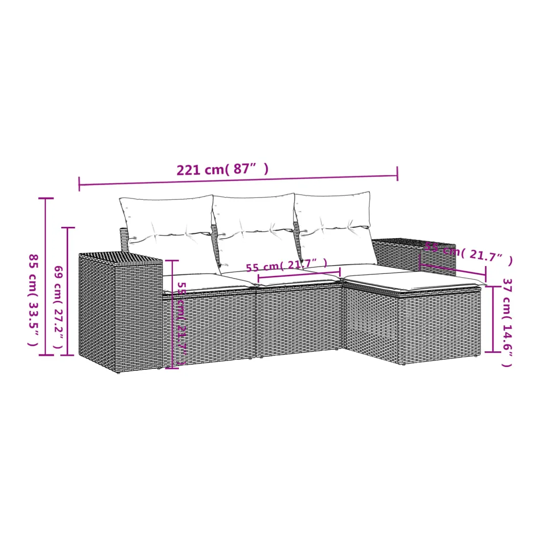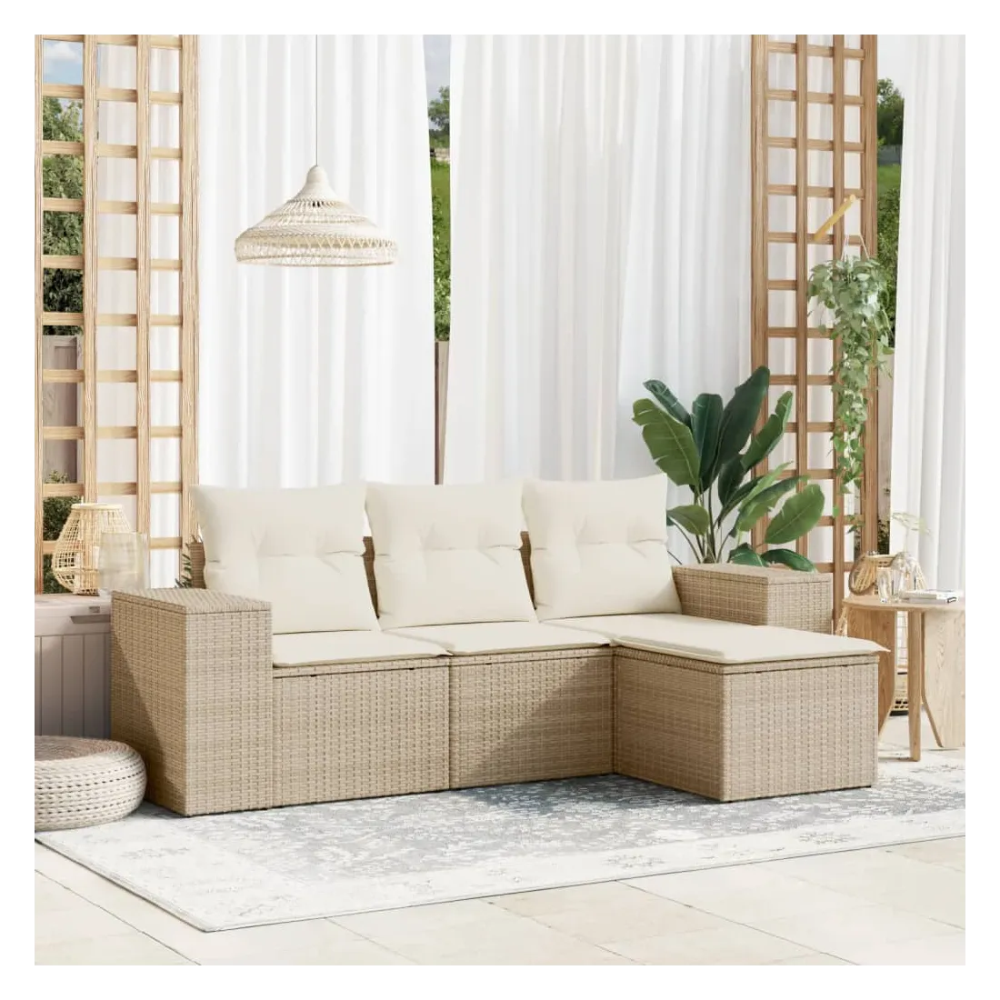 Cet ensemble de canapés de jardin est le complément parfait de votre arrière-cour, terrasse ou patio, offrant un espace confortable et accueillant pour discuter avec la famille et les amis ou simplement se détendre et profiter de l'extérieur. Matériau durable : la résine tressée, également connue sous le nom de poly rotin, est un matériau synthétique solide et nécessitant peu d'entretien qui ressemble au rotin naturel. Il est léger, facile à nettoyer et couramment utilisé pour les meubles d'extérieur en raison de sa durabilité et de ses propriétés de résistance aux intempéries.Fonction de rangement avec sac résistant à l'eau : le mobilier de jardin dispose d'un espace de rangement sous l'assise, complété par un sac résistant à l'eau pour ranger coussins, jouets et autres objets. Le sac intérieur peut être solidement fixé au mobilier d'extérieur grâce à des attaches auto-agrippantes pour plus de stabilité.Housse amovible et lavable : ces coussins de siège sont dotés de housses amovibles pour un lavage et un entretien faciles.Conception modulaire : cet ensemble de meubles d'extérieur a une conception modulaire, ce qui le rend complètement flexible et facile à déplacer, afin que vous puissiez créer un agencement de meubles d'extérieur personnalisé. Bon à savoir :Pour que vos meubles d'extérieur restent beaux, nous vous recommandons de les protéger avec une housse imperméable.
