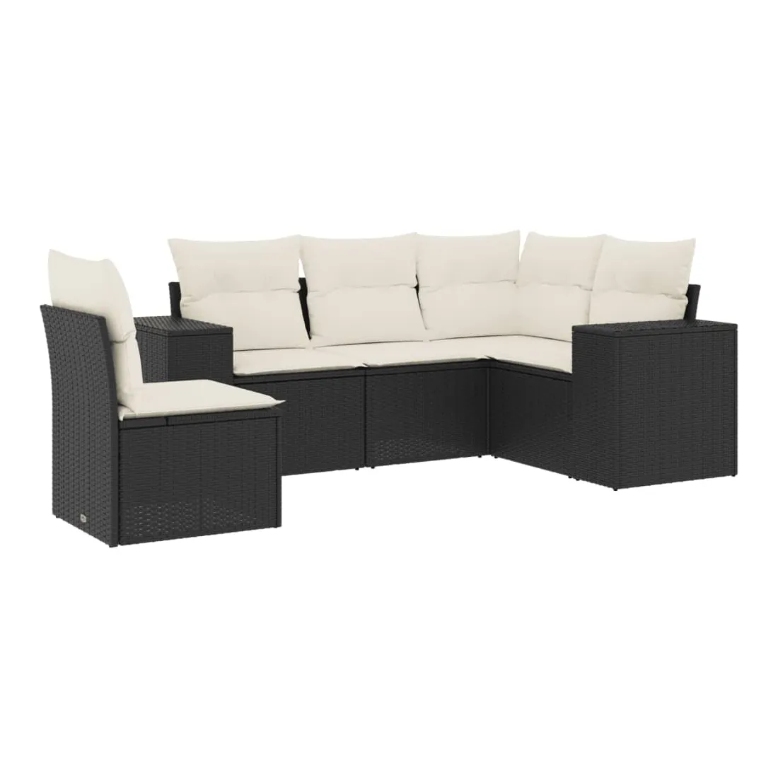 Salon de jardin 5 pcs avec coussins noir résine tressée
