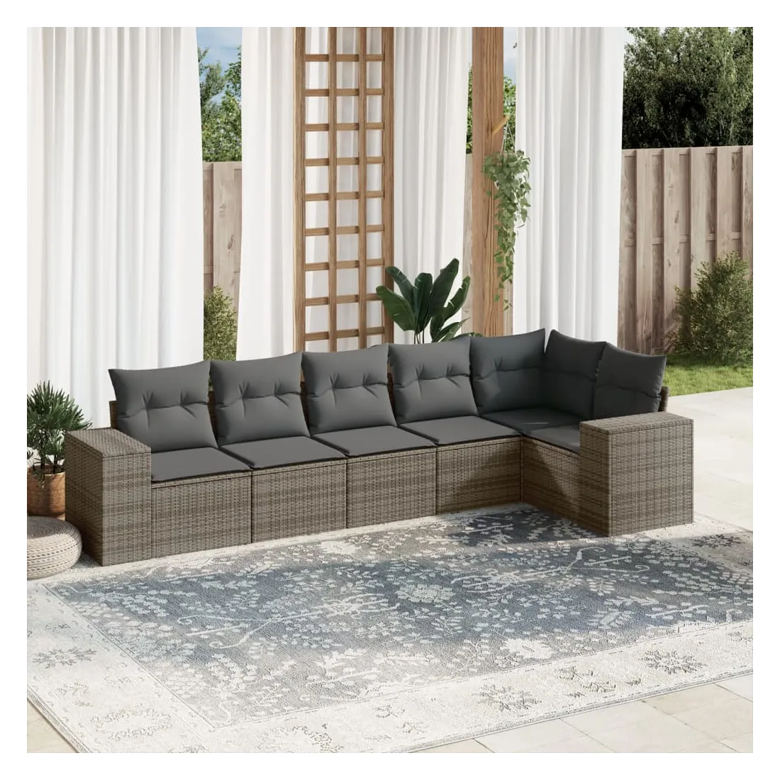 Salon de jardin 6 pcs avec coussins gris résine tressée