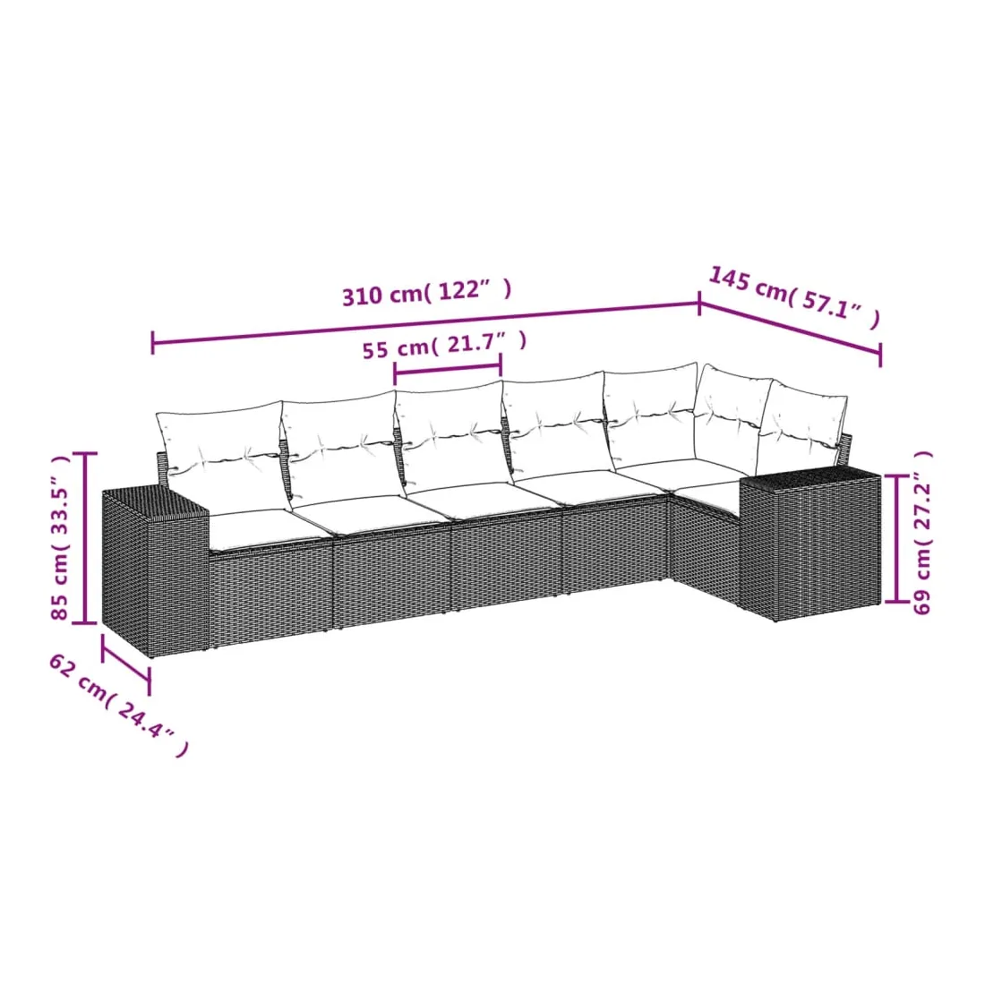 Cet ensemble de canapés de jardin est le complément parfait de votre arrière-cour, terrasse ou patio, offrant un espace confortable et accueillant pour discuter avec la famille et les amis ou simplement se détendre et profiter de l'extérieur. Matériau durable : la résine tressée, également connue sous le nom de poly rotin, est un matériau synthétique solide et nécessitant peu d'entretien qui ressemble au rotin naturel. Il est léger, facile à nettoyer et couramment utilisé pour les meubles d'extérieur en raison de sa durabilité et de ses propriétés de résistance aux intempéries.Fonction de rangement avec sac résistant à l'eau : le mobilier de jardin dispose d'un espace de rangement sous l'assise, complété par un sac résistant à l'eau pour ranger coussins, jouets et autres objets. Le sac intérieur peut être solidement fixé au mobilier d'extérieur grâce à des attaches auto-agrippantes pour plus de stabilité.Housse amovible et lavable : ces coussins de siège sont dotés de housses amovibles pour un lavage et un entretien faciles.Conception modulaire : cet ensemble de meubles d'extérieur a une conception modulaire, ce qui le rend complètement flexible et facile à déplacer, afin que vous puissiez créer un agencement de meubles d'extérieur personnalisé. Bon à savoir :Pour que vos meubles d'extérieur restent beaux, nous vous recommandons de les protéger avec une housse imperméable.