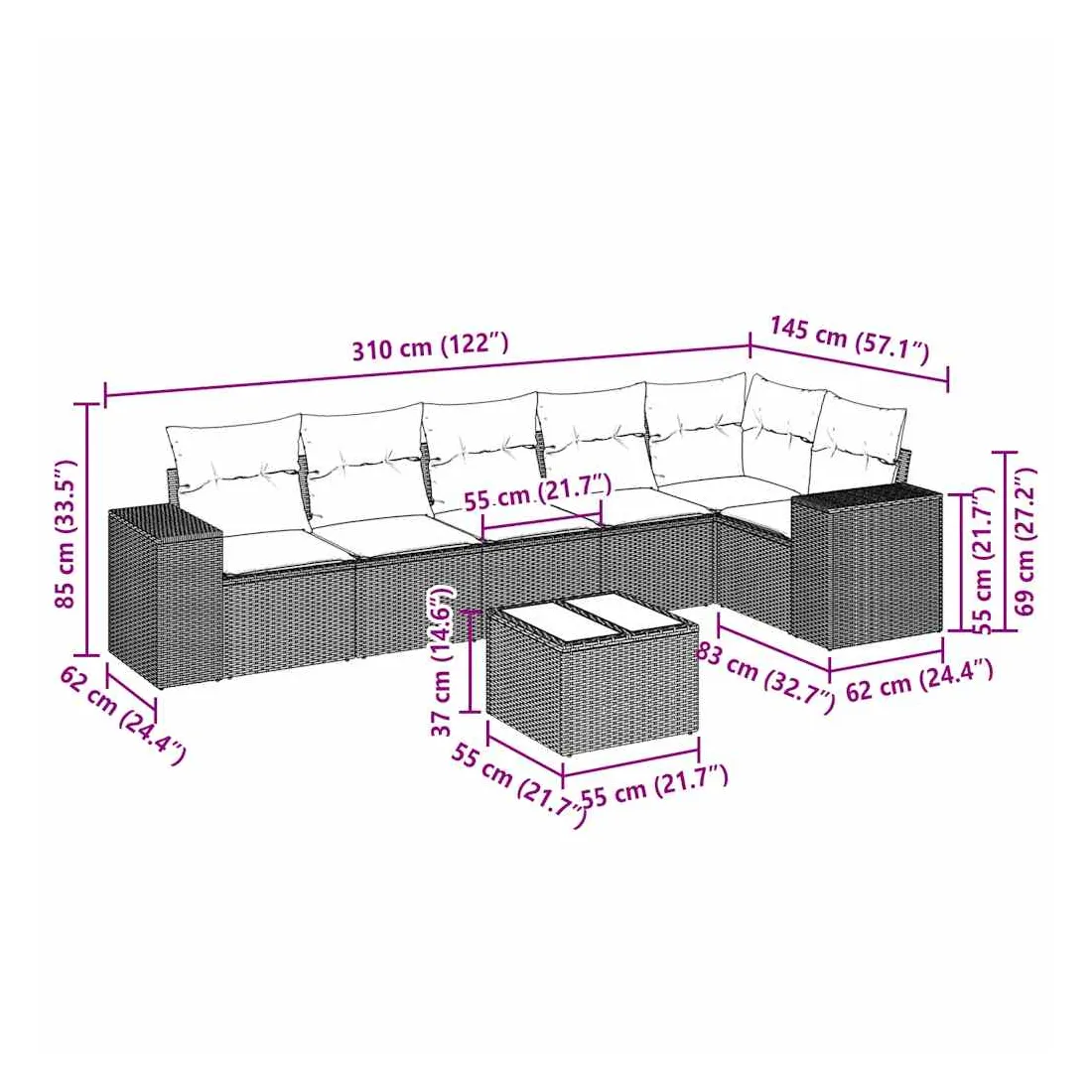 - Dimensions : 55 x 55 x 37 cm (L x l x H)