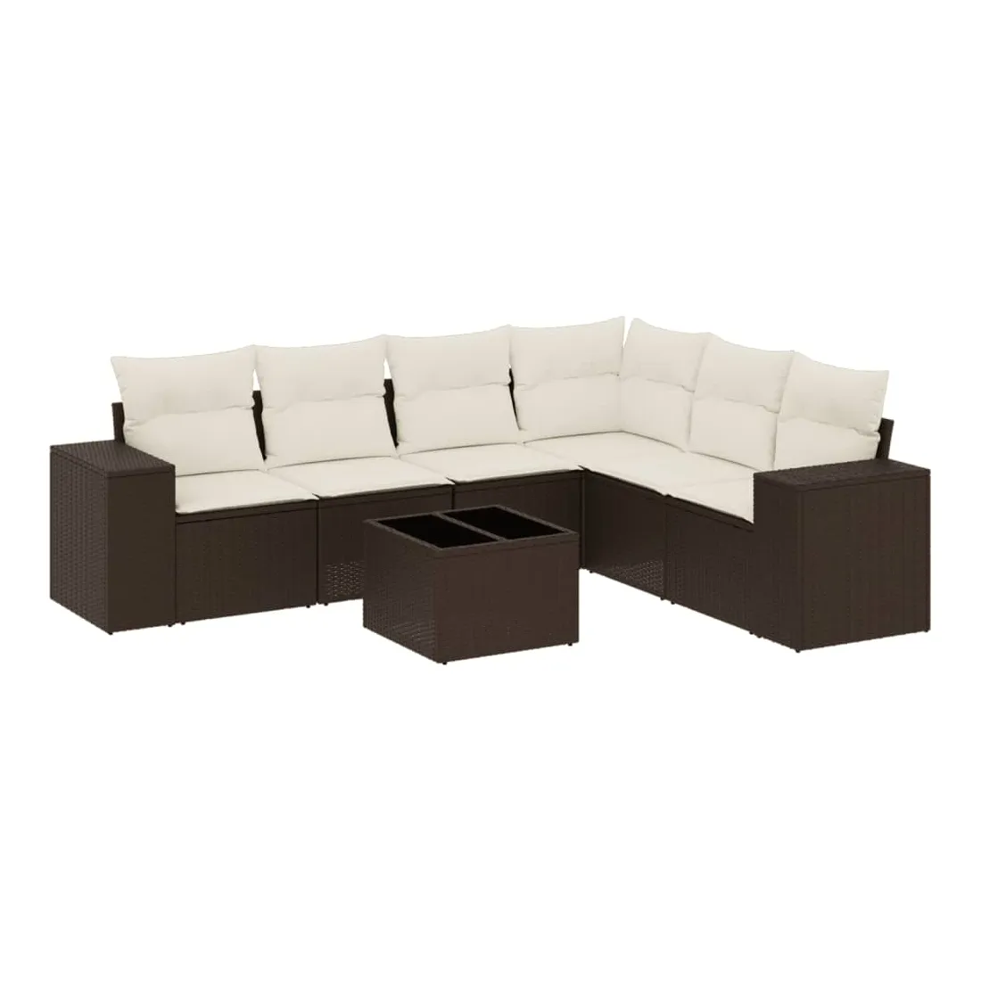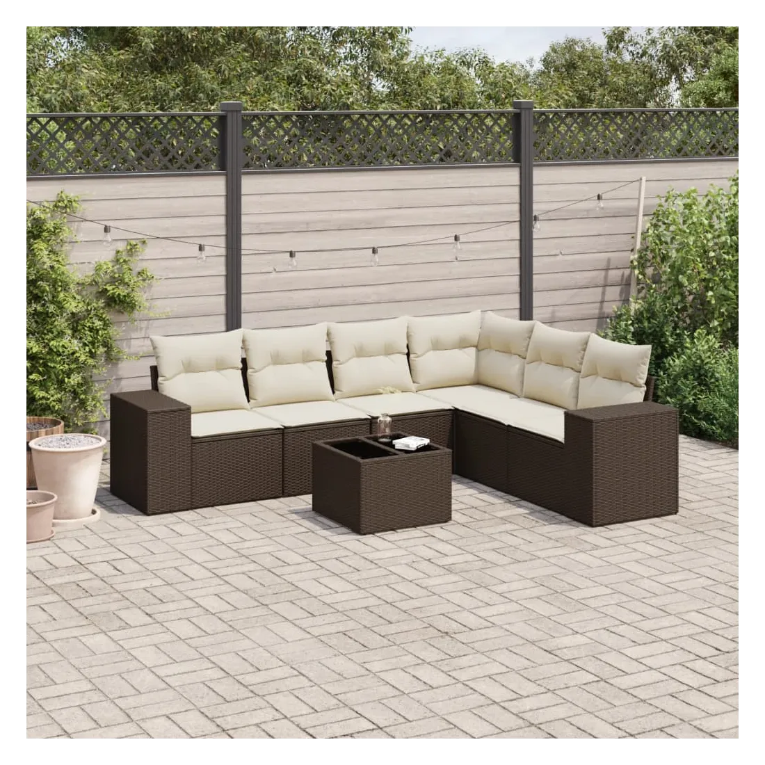 Salon de jardin avec coussins 7 pcs marron résine tressée