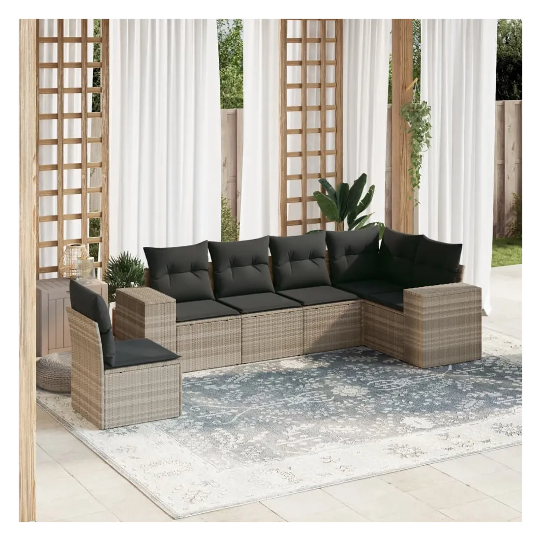 Cet ensemble de canapés de jardin est le complément parfait de votre arrière-cour, terrasse ou patio, offrant un espace confortable et accueillant pour discuter avec la famille et les amis ou simplement se détendre et profiter de l'extérieur. Matériau durable : la résine tressée, également connue sous le nom de poly rotin, est un matériau synthétique solide et nécessitant peu d'entretien qui ressemble au rotin naturel. Il est léger, facile à nettoyer et couramment utilisé pour les meubles d'extérieur en raison de sa durabilité et de ses propriétés de résistance aux intempéries.Fonction de rangement avec sac résistant à l'eau : le mobilier de jardin dispose d'un espace de rangement sous l'assise, complété par un sac résistant à l'eau pour ranger coussins, jouets et autres objets. Le sac intérieur peut être solidement fixé au mobilier d'extérieur grâce à des attaches auto-agrippantes pour plus de stabilité.Housse amovible et lavable : ces coussins de siège sont dotés de housses amovibles pour un lavage et un entretien faciles.Conception modulaire : cet ensemble de meubles d'extérieur a une conception modulaire, ce qui le rend complètement flexible et facile à déplacer, afin que vous puissiez créer un agencement de meubles d'extérieur personnalisé. Bon à savoir :Pour que vos meubles d'extérieur restent beaux, nous vous recommandons de les protéger avec une housse imperméable.