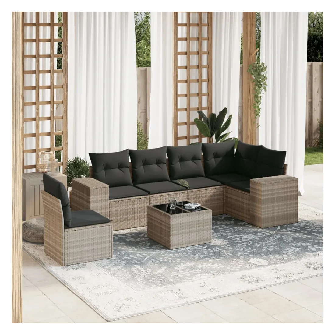 Cet ensemble de canapés de jardin est le complément parfait de votre arrière-cour, terrasse ou patio, offrant un espace confortable et accueillant pour discuter avec la famille et les amis ou simplement se détendre et profiter de l'extérieur. Matériau durable : la résine tressée, également connue sous le nom de poly rotin, est un matériau synthétique solide et nécessitant peu d'entretien qui ressemble au rotin naturel. Il est léger, facile à nettoyer et couramment utilisé pour les meubles d'extérieur en raison de sa durabilité et de ses propriétés de résistance aux intempéries.Fonction de rangement avec sac résistant à l'eau : le mobilier de jardin dispose d'un espace de rangement sous l'assise, complété par un sac résistant à l'eau pour ranger coussins, jouets et autres objets. Le sac intérieur peut être solidement fixé au mobilier d'extérieur grâce à des attaches auto-agrippantes pour plus de stabilité.Dessus en verre : le dessus de la table d'extérieur est fabriqué en verre trempé solide et durable, ce qui le rend facile à nettoyer avec un chiffon humide et ajoute une touche d'élégance à votre espace extérieur.Housse amovible et lavable : ces coussins de siège sont dotés de housses amovibles pour un lavage et un entretien faciles.Conception modulaire : cet ensemble de meubles d'extérieur a une conception modulaire, ce qui le rend complètement flexible et facile à déplacer, afin que vous puissiez créer un agencement de meubles d'extérieur personnalisé. Bon à savoir :Pour que vos meubles d'extérieur restent beaux, nous vous recommandons de les protéger avec une housse imperméable.