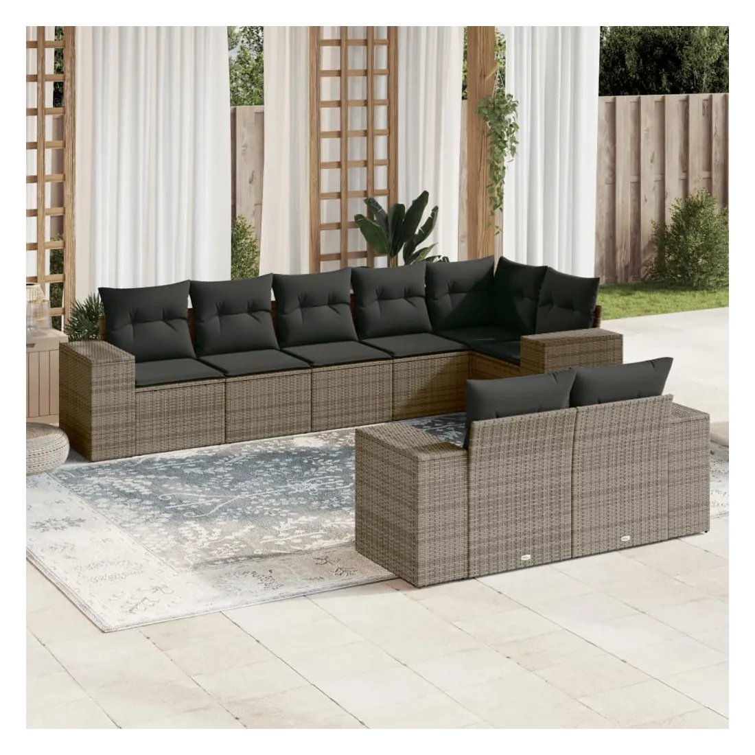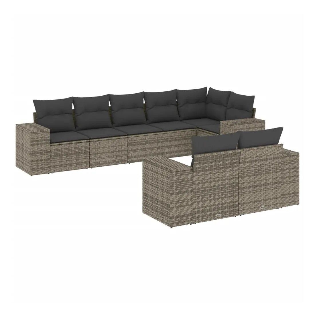 Salon de jardin 8 pcs avec coussins gris résine tressée