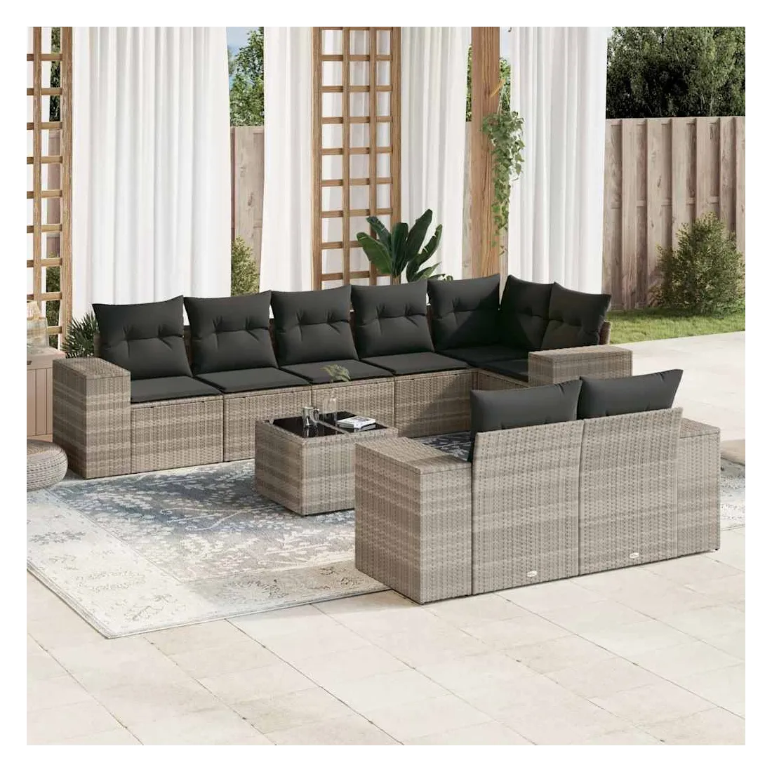 Salon de jardin 9 pcs avec coussins gris clair résine tressée