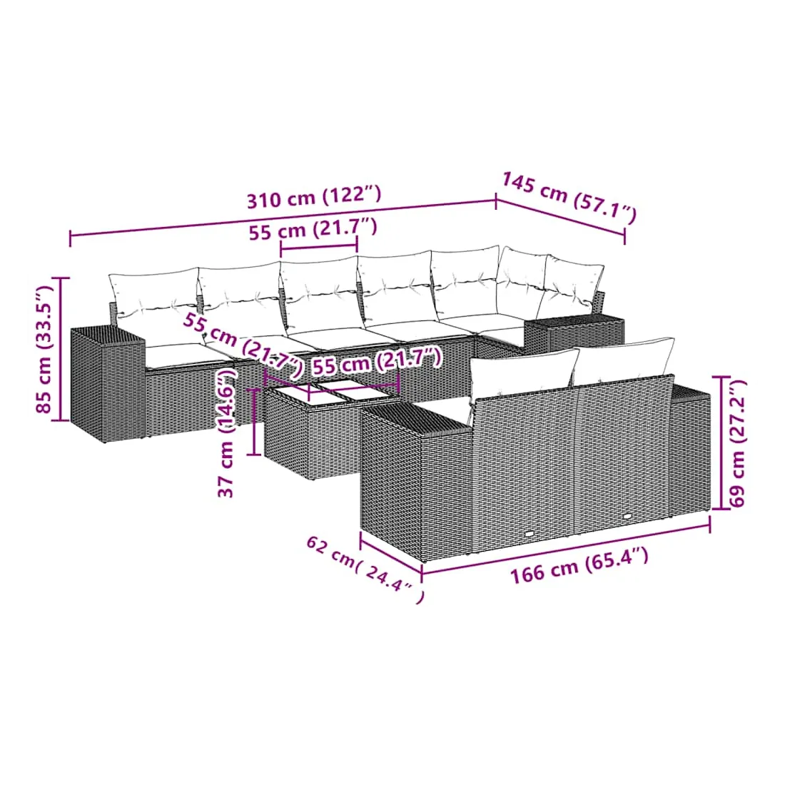 • Dimensions : 55 x 55 x 37 cm (L x l x H)