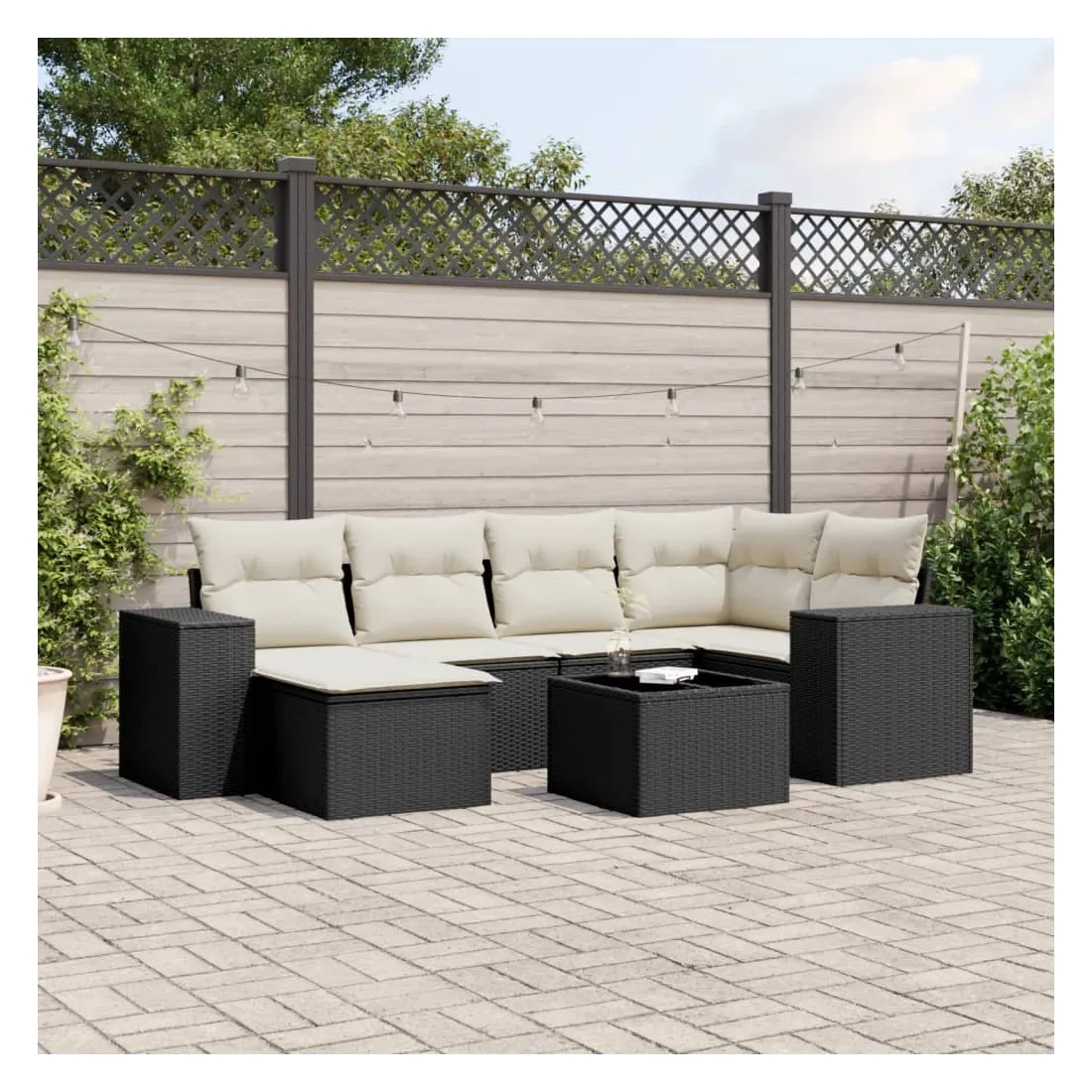 Cet ensemble de canapés de jardin est le complément parfait de votre arrière-cour, terrasse ou patio, offrant un espace confortable et accueillant pour discuter avec la famille et les amis ou simplement se détendre et profiter de l'extérieur. Matériau durable : la résine tressée, également connue sous le nom de poly rotin, est un matériau synthétique solide et nécessitant peu d'entretien qui ressemble au rotin naturel. Il est léger, facile à nettoyer et couramment utilisé pour les meubles d'extérieur en raison de sa durabilité et de ses propriétés de résistance aux intempéries.Fonction de rangement avec sac résistant à l'eau : le mobilier de jardin dispose d'un espace de rangement sous l'assise, complété par un sac résistant à l'eau pour ranger coussins, jouets et autres objets. Le sac intérieur peut être solidement fixé au mobilier d'extérieur grâce à des attaches auto-agrippantes pour plus de stabilité.Dessus en verre : le dessus de la table d'extérieur est fabriqué en verre trempé solide et durable, ce qui le rend facile à nettoyer avec un chiffon humide et ajoute une touche d'élégance à votre espace extérieur.Housse amovible et lavable : ces coussins de siège sont dotés de housses amovibles pour un lavage et un entretien faciles.Conception modulaire : cet ensemble de meubles d'extérieur a une conception modulaire, ce qui le rend complètement flexible et facile à déplacer, afin que vous puissiez créer un agencement de meubles d'extérieur personnalisé. Bon à savoir :Pour que vos meubles d'extérieur restent beaux, nous vous recommandons de les protéger avec une housse imperméable.