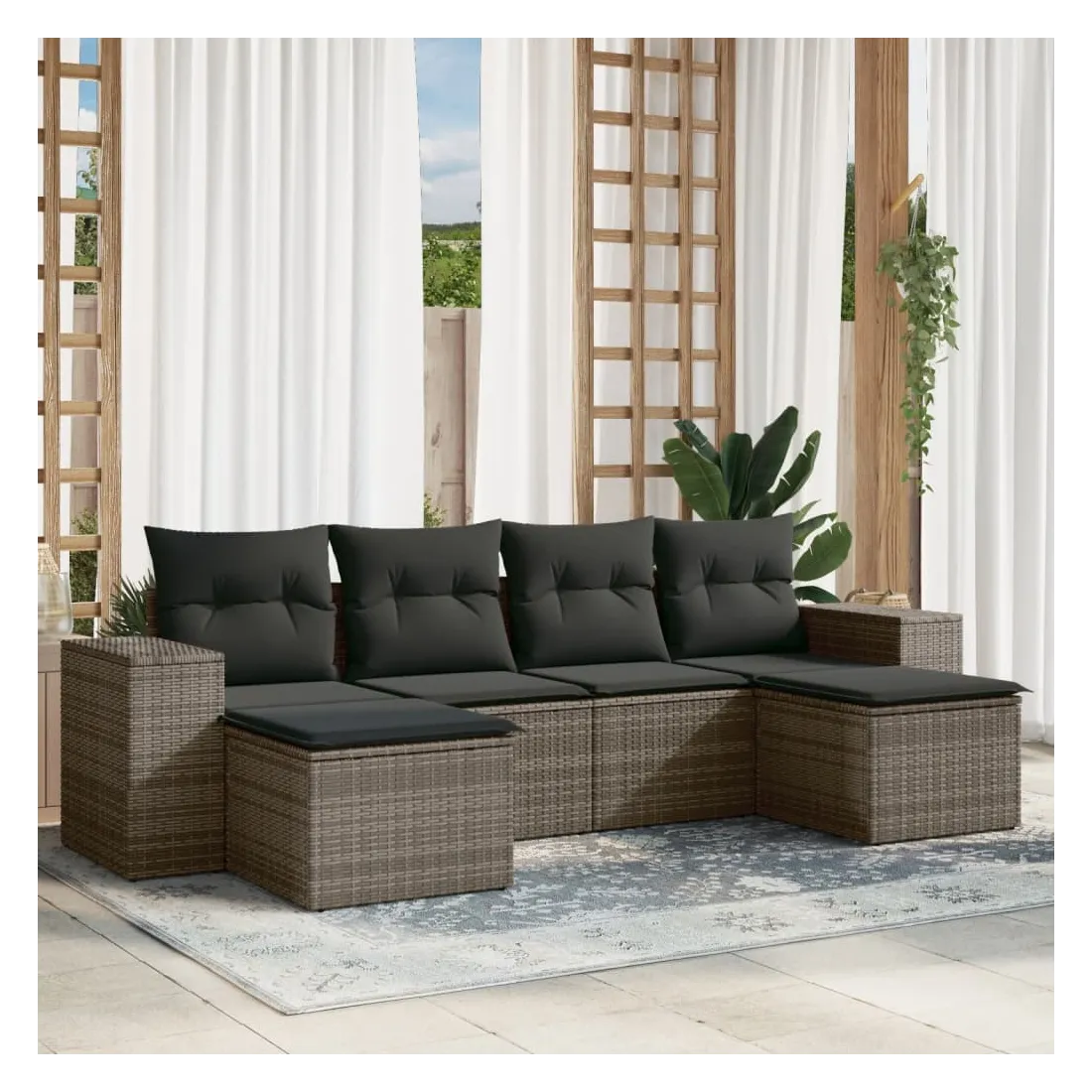Cet ensemble de canapés de jardin est le complément parfait de votre arrière-cour, terrasse ou patio, offrant un espace confortable et accueillant pour discuter avec la famille et les amis ou simplement se détendre et profiter de l'extérieur. Matériau durable : la résine tressée, également connue sous le nom de poly rotin, est un matériau synthétique solide et nécessitant peu d'entretien qui ressemble au rotin naturel. Il est léger, facile à nettoyer et couramment utilisé pour les meubles d'extérieur en raison de sa durabilité et de ses propriétés de résistance aux intempéries.Fonction de rangement avec sac résistant à l'eau : le mobilier de jardin dispose d'un espace de rangement sous l'assise, complété par un sac résistant à l'eau pour ranger coussins, jouets et autres objets. Le sac intérieur peut être solidement fixé au mobilier d'extérieur grâce à des attaches auto-agrippantes pour plus de stabilité.Housse amovible et lavable : ces coussins de siège sont dotés de housses amovibles pour un lavage et un entretien faciles.Conception modulaire : cet ensemble de meubles d'extérieur a une conception modulaire, ce qui le rend complètement flexible et facile à déplacer, afin que vous puissiez créer un agencement de meubles d'extérieur personnalisé. Bon à savoir :Pour que vos meubles d'extérieur restent beaux, nous vous recommandons de les protéger avec une housse imperméable.